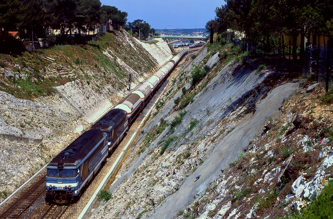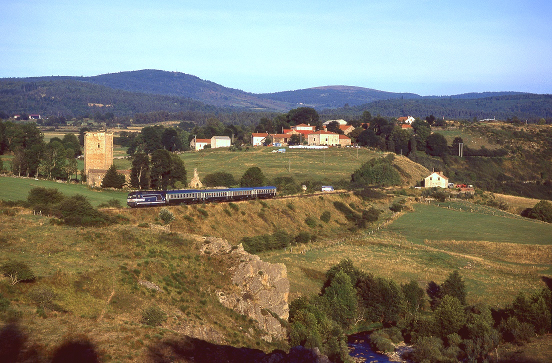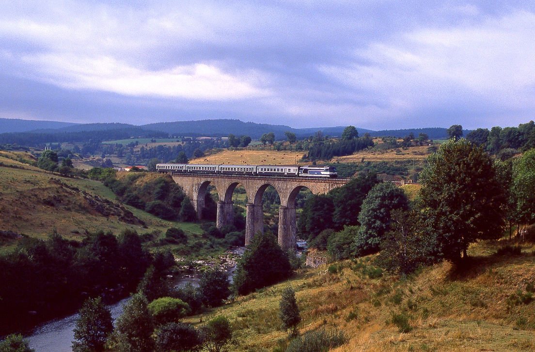 Überführungsmarch 314789 von Châlons en Champagne nach Strassburg. Die 67626 bringt zwei neu gestalltete Corail Wagen im Fluo Design ins Elsass.