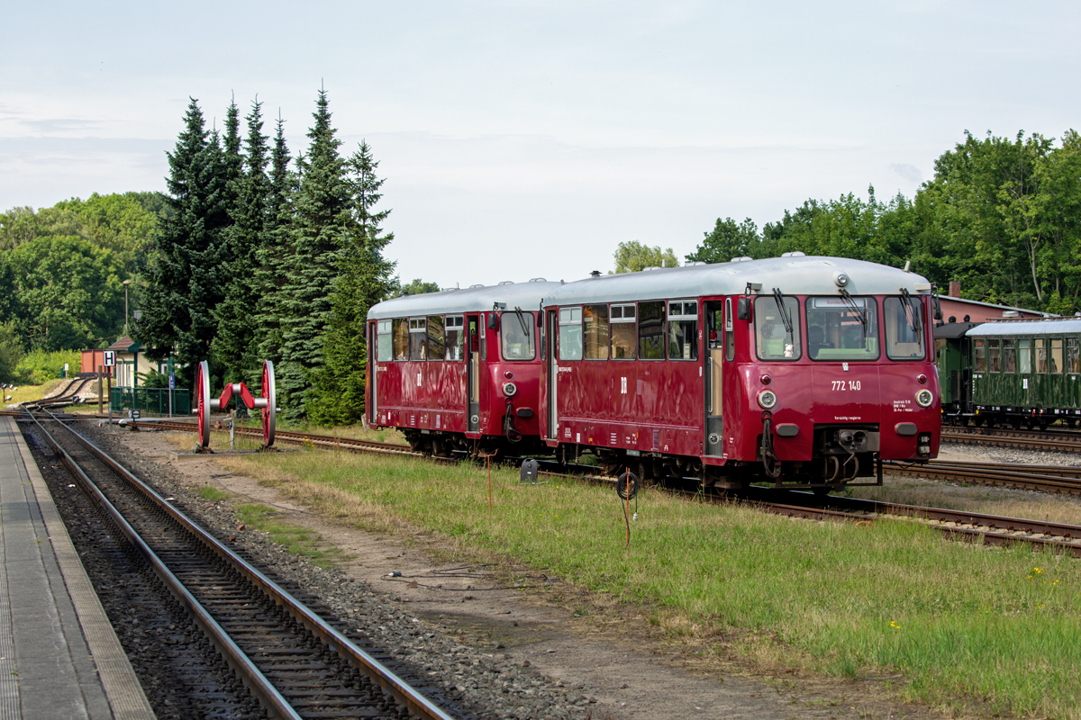 Lok 86 1744 und Lok 114 703 stehen in Putbus bereit für Fahrten eines historischen Reisezugs zwischen Bergen und Lauterbach Mole. Des Weiteren soll noch eine Ferkeltaxi zum Einsatz kommen. - 28.07.2021