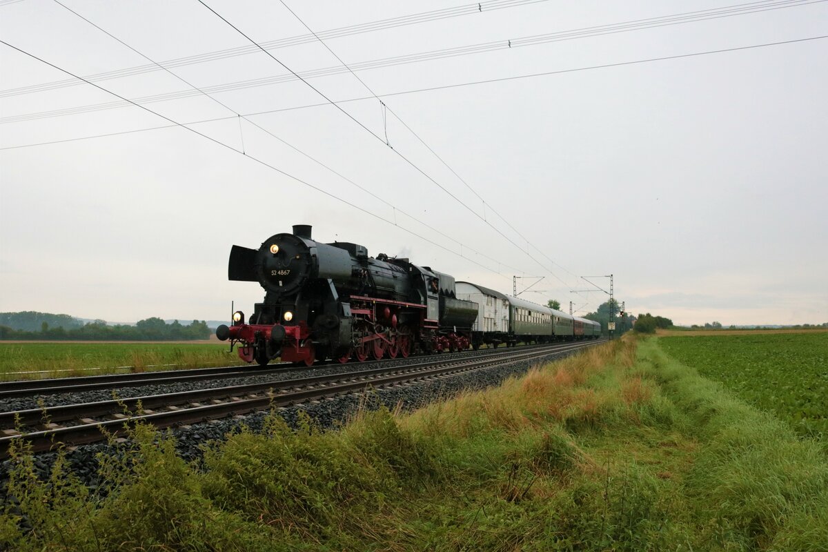 Historische Eisenbahn Frankfurt am Main 52 4867 mit Sonderzug am 28.08.21 bei Bad Vilbel
