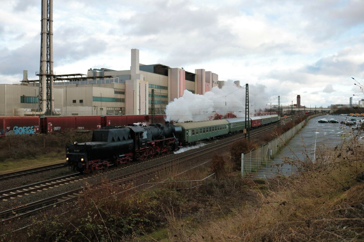 Historische Eisenbahn Frankfurt am Main 52 4867 mit einen Sonderzug am 05.12.21 in Rüsselsheim am Opelwerk
