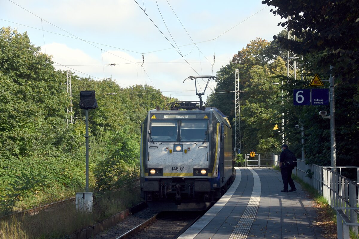 LÜNEBURG (Landkreis Lüneburg), 05.09.2021, 146-01 der Bahngesellschaft Metronom als RB 31 (Niedersachsen) bei der Einfahrt auf Gleis 6 des Bahnhofs Lüneburg (Gleis 6 liegt durch eine Straße getrennt etwas abseits vom eigentlichen Bahnhof) Reinhard Zabel