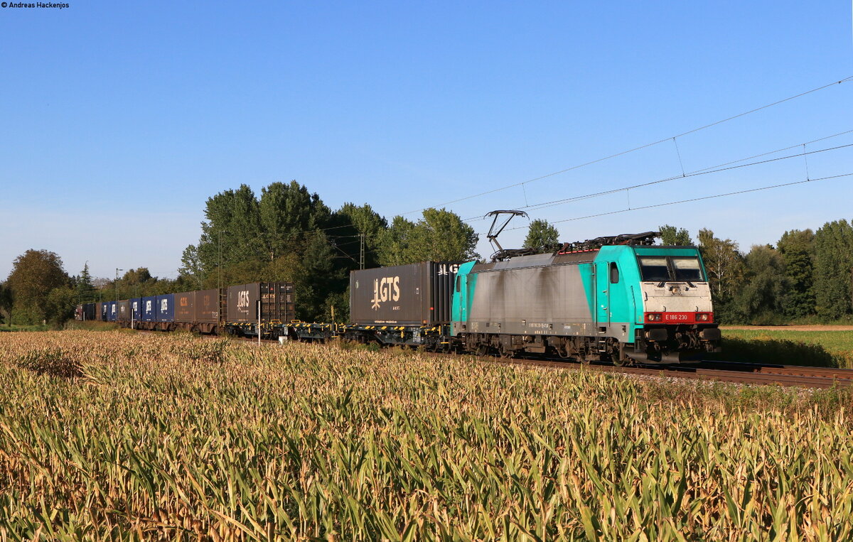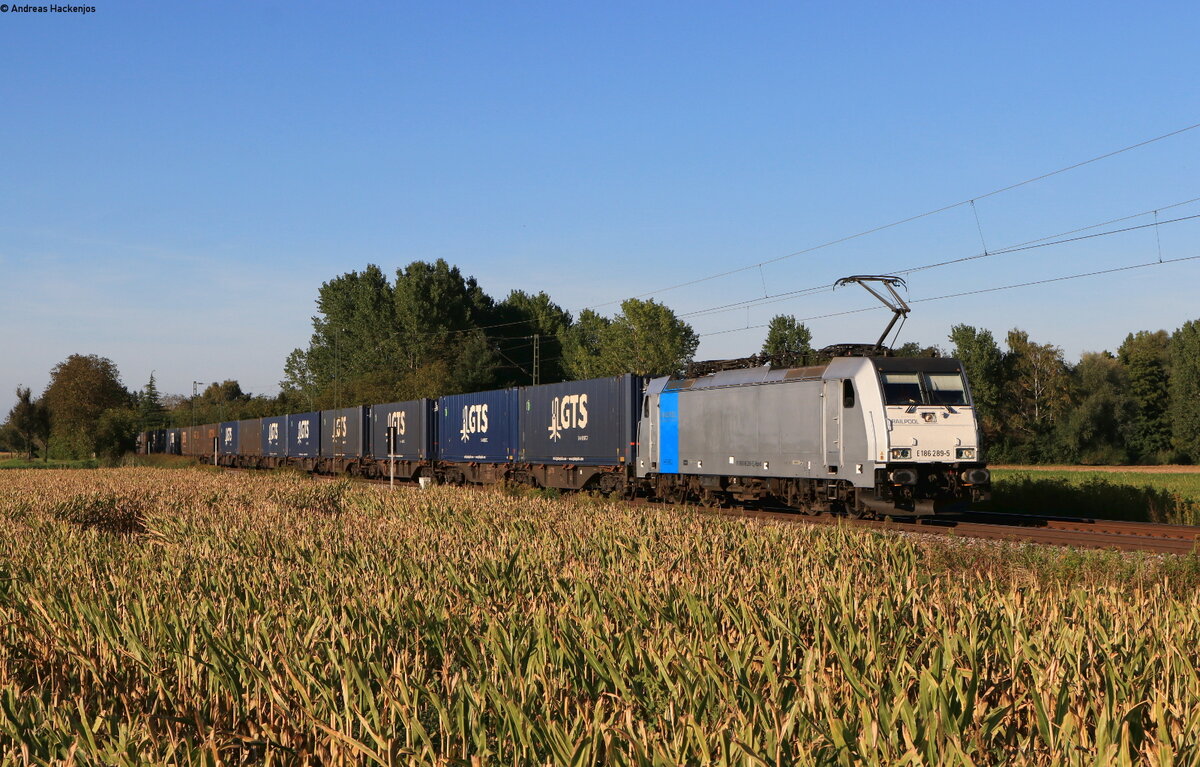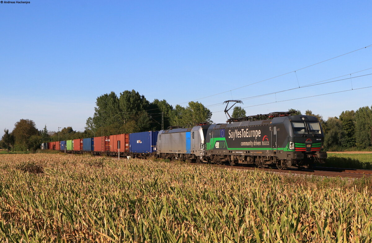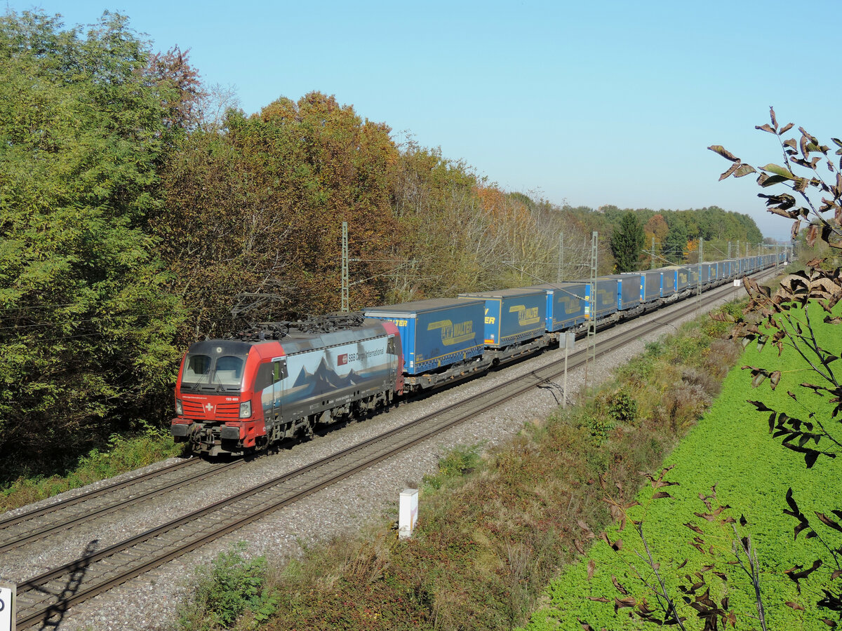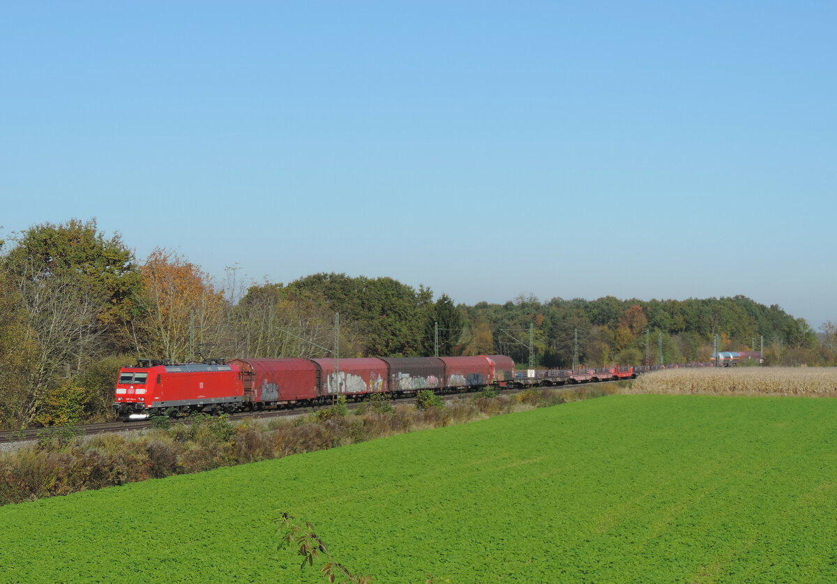 Die Fracht von 185 299 während des Sonnenuntergangs in Hügelheim. November 2021.
