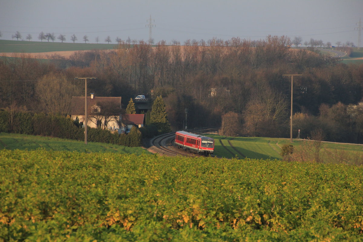 Unbekannter 642 als RE Heilbronn-Crailsheim am 13.01.2021 an der ehemaligen Blockstelle Kahlberg. Im Tal befindet sich der Öhringer Teilort Eckartsweiler. Fluffy