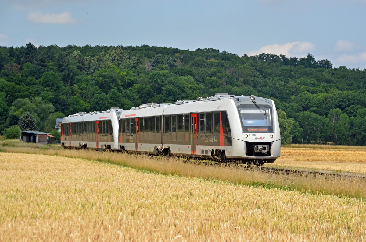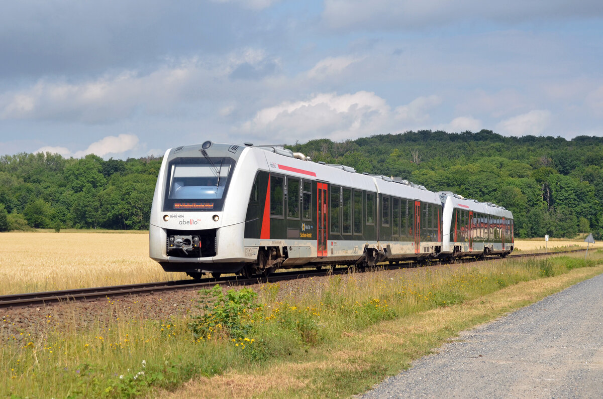 1648 404 und 1648 448 von abellio waren am 05.07.22 unterwegs von Goslar nach Halle(S). Hier erreichen sie soeben die Ortslage Ilsenburg. Martin Schneider