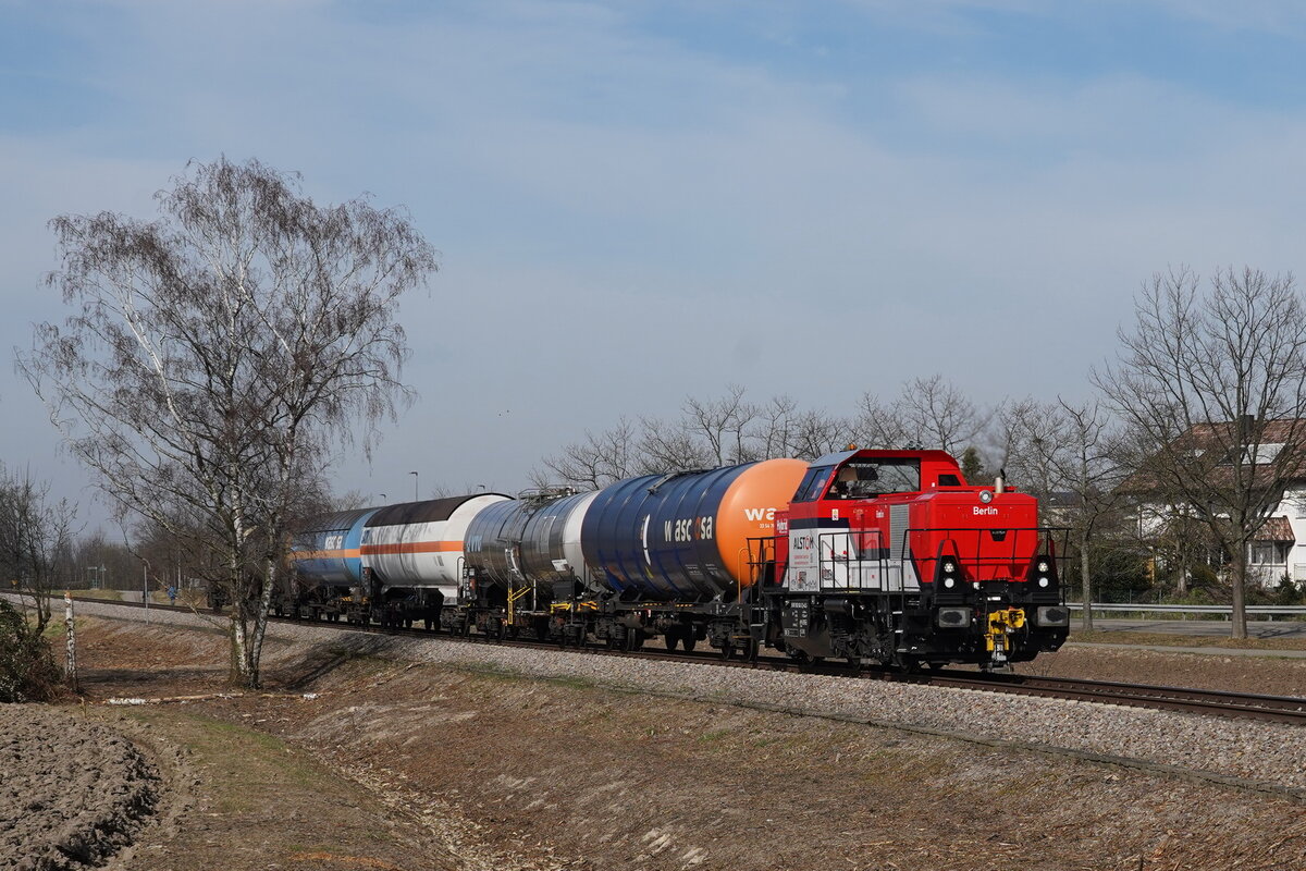 Die Lok Alstom-Lokomotiven-Service 1002 042 "Berlin"(90 80 1002 042-2 D-ALS) ist eine Hybridlok vom Typ H3-Hybrid (Alstom2021 FNr.H3-00042). Die SWEG hat seit vergangenem Jahr eine Kooperation mit Alstom und setzt im Güterverkehr nun keine eigenen, sondern neu Alstom-Loks ein. Der Güterzug ist unterwegs auf der SWEG Strecke 9423 von Greffern (Chemiepark Rheinmünster, vormals DOW) nach Bühl.