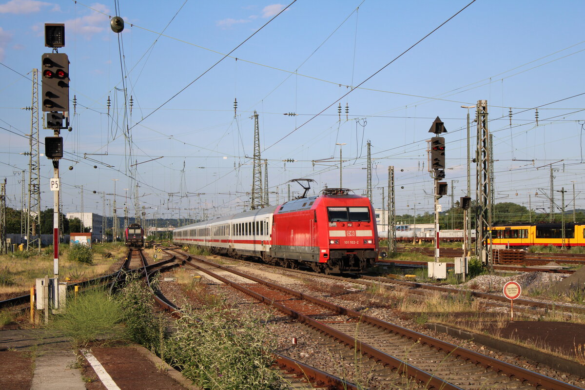 DB 101 102-2 erreicht am Abend des 13.06.2022 mit dem IC 2183 Karlsruhe Hbf.