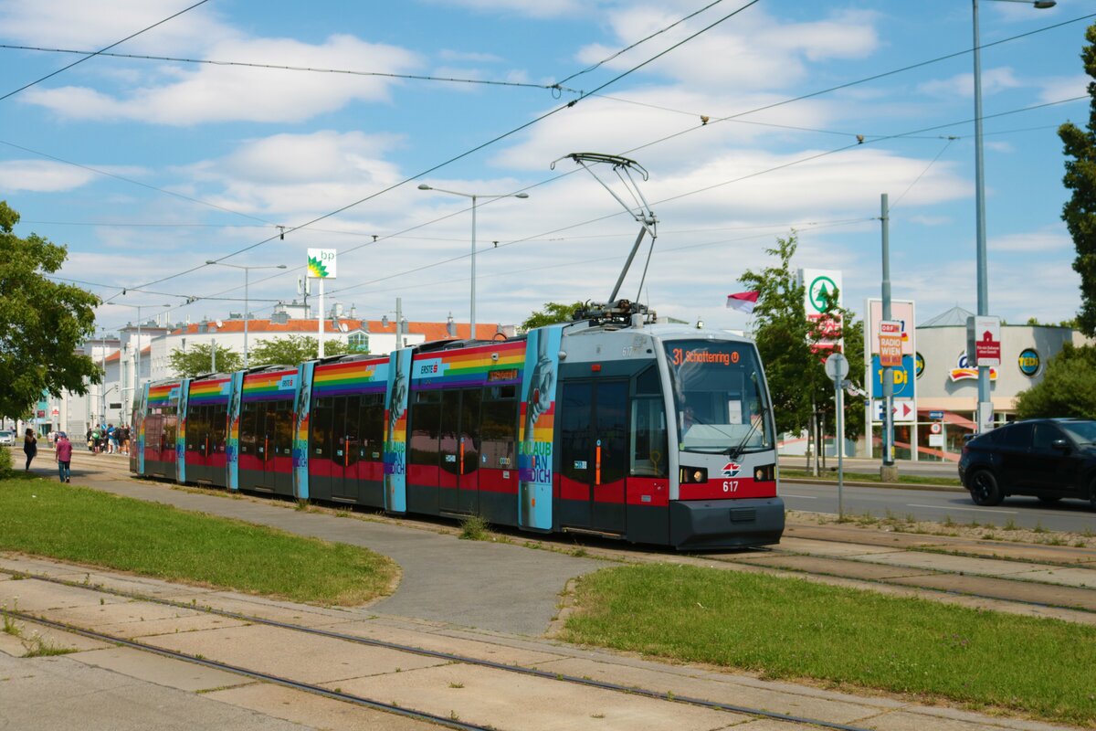 Am 02.09.2022 war B1 783 auf der Wiener Linie D von Favoriten zum Beethovengang unterwegs. Kurz vor der Endstation muss der Zug in der Greinergasse noch einen Anstieg meistern Michael Brunsch