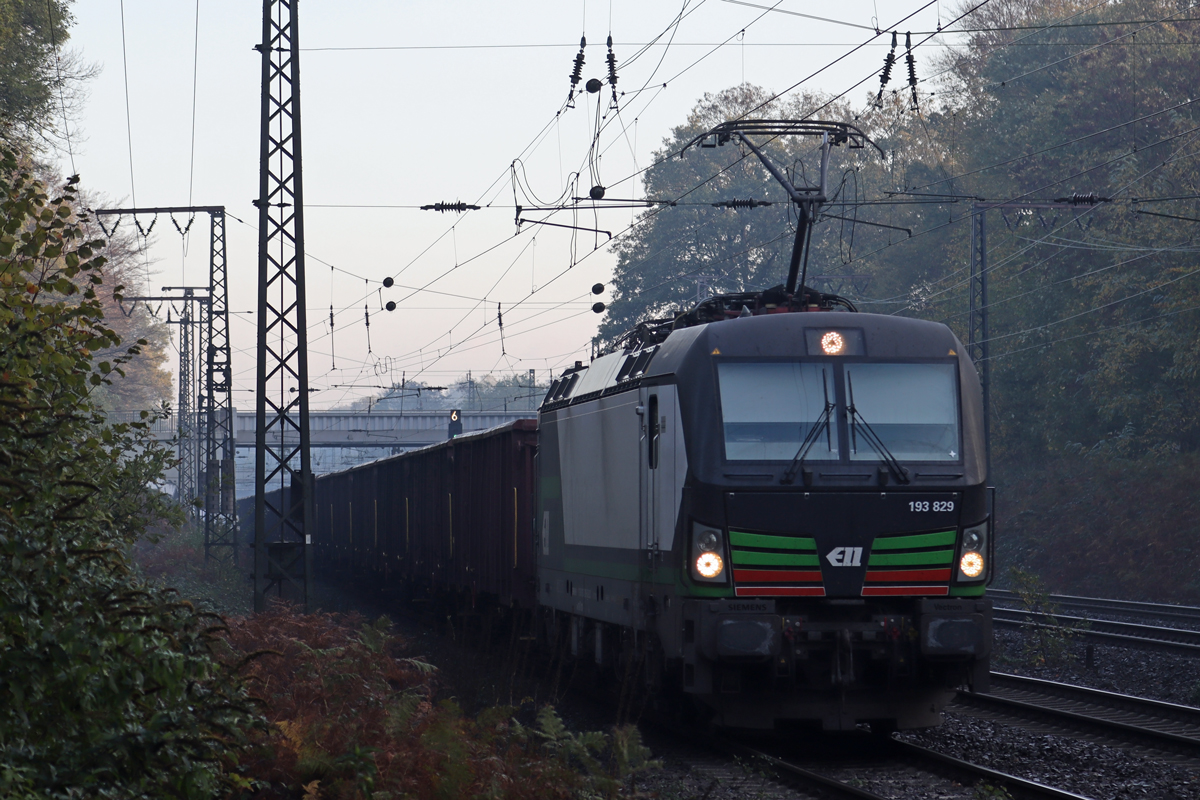 Havelländische Eisenbahn AG, Berlin-Spandau [D] mit ihrer "159 004" [NVR-Nummer: 90 80 2159 004-1 D-HVLE] und einem staubenden Schüttgutwagenzug am 08.11.22 Berlin Hirschgarten. Lothar Stöckmann