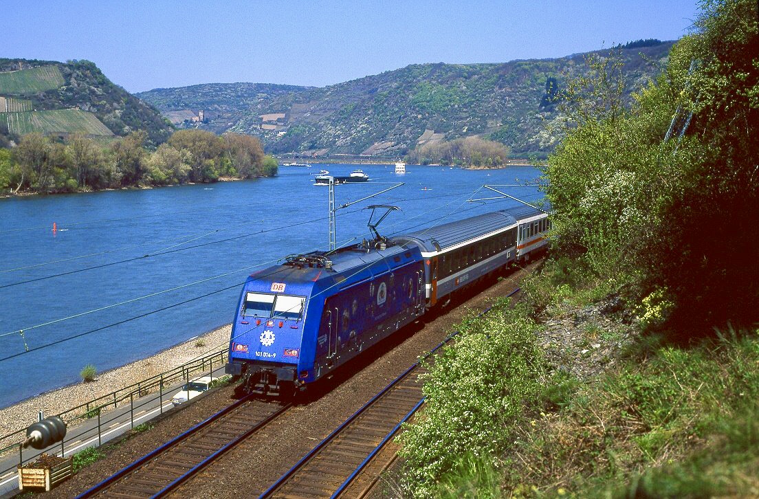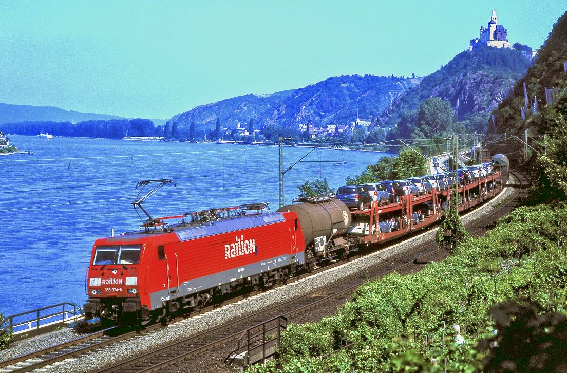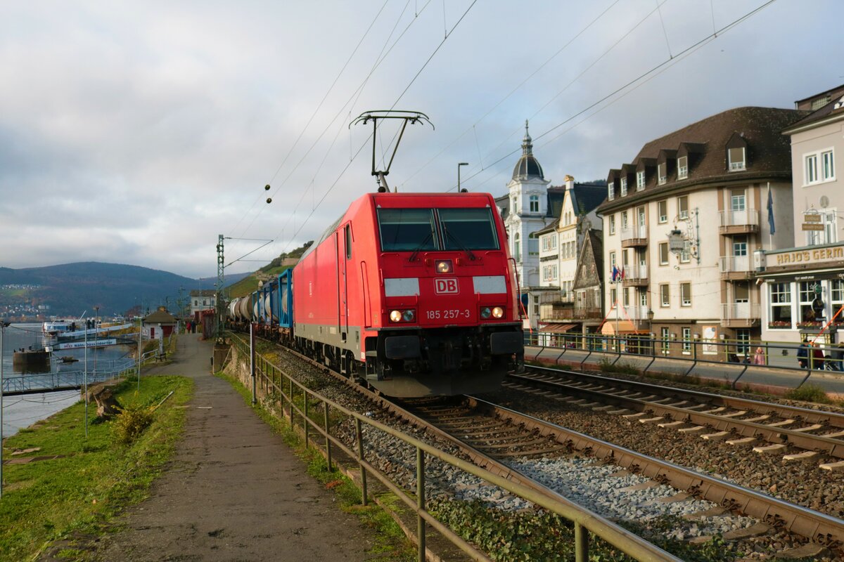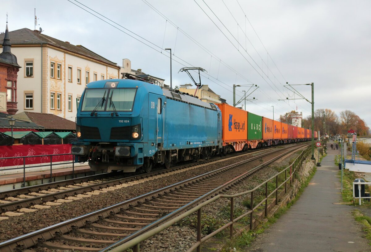 Von Bingen aus konnte ich 193 596 Naturtalent in weiß und 193 281 green deal in grün mit einem KLV auf der rechten Rheinseite kurz vor Rüdesheim aufnehmen.