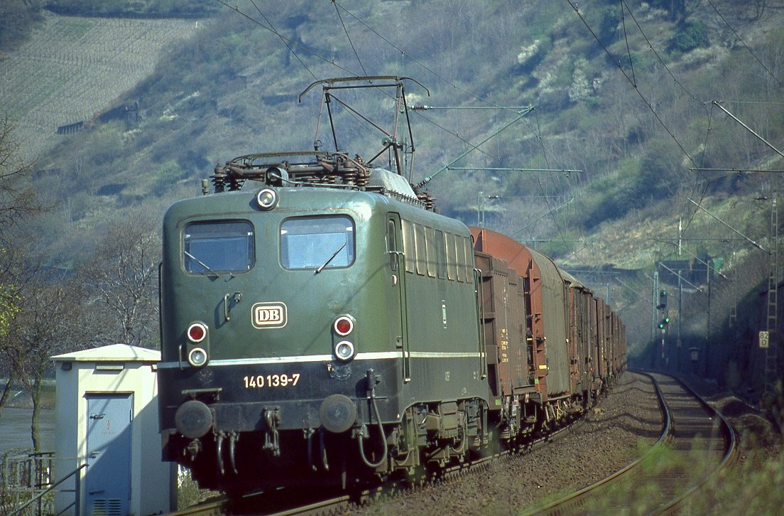 Eigentlich mache ich ungern Bilder in so starken Gegenlicht aber da die EBS 140er am Rhein doch eher eine Rarität sind entschied ich mich doch auf den Auslöser zu drücken. Hier sind EBS 140 811 mit einer Schwesterlok durch Rüdesheim gen Süden unterwegs. Am Haken haben sie Holzstämme.