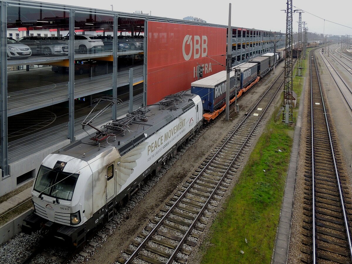 Seit das Unternehmen Ecco-Rail die Traktionierung der sogenannten Ekol-KLVs übernommen hat, hat der Reiz, diese Leistungen zu fotografieren, stark abgenommen. Die Bespannungen sind meist recht eintönig geworden und bestehen aus Vectrons der bekannten Leasingunternehmen im regulären Design. Seit diesem Jahr gibt es allerdings eine halbwegs attraktive Variante bei den von Akiem angemieteten Loks. Am 22. Juli 2022 konnte ich die mit dem Firmenlogo versehene 193 778 vor dem DGS 95693 von Triest nach Köln Eifeltor bei der Einfahrt in den Bahnhof München Süd dokumentieren. Christoph Schneider