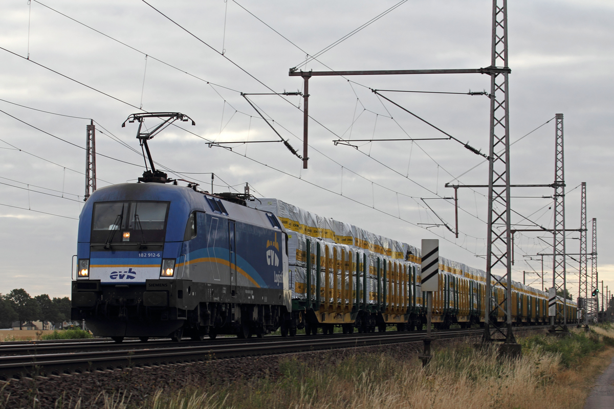 HLG - Holzlogistik and Güterbahn GmbH, Bebra [D] mit "187 330-6" [NVR-Nummer: 91 80 6187 330-6 D-Bebra] kam am Abend des 22.07.22 mit einem Stammholztransportzug in Stendal an hier bei der Vorbeifahrt Stendal Hbf. Lothar Stöckmann