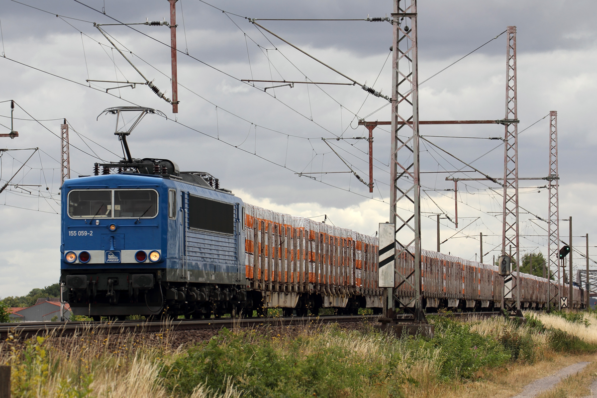 ČD Cargo a.s., Praha [CZ] mit "383 007-2" [NVR-Nummer: 91 54 7383 007-2 CZ-CDC] und einem Stammholz-Transportzug am 01.06.22 Durchfahrt Bf. Magdeburg Neustadt. Lothar Stöckmann