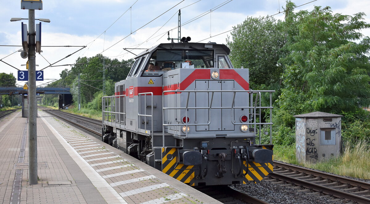KAF - Falkenhahn Bau AG, Kreuztal [D] mit ihrer MaK G 1000 BB Lok, Name: "Julius" [NVR-Nummer: 90 80 1271 006-9 D-KAF] am 06.07.23 Vorbeifahrt Bahnhof Dedensen-Gümmer. Lothar Stöckmann