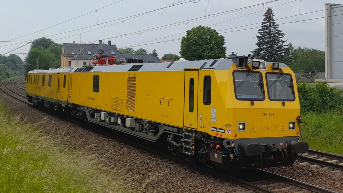 Am 7.6.23 fuhr 143 352 der DB Bahnbau Gruppe mit einem Bauzug durch Chemnitz Richtung Riesa, hier kurz vor dem Haltepunkt Chemnitz-Schönau. saxony_spotter