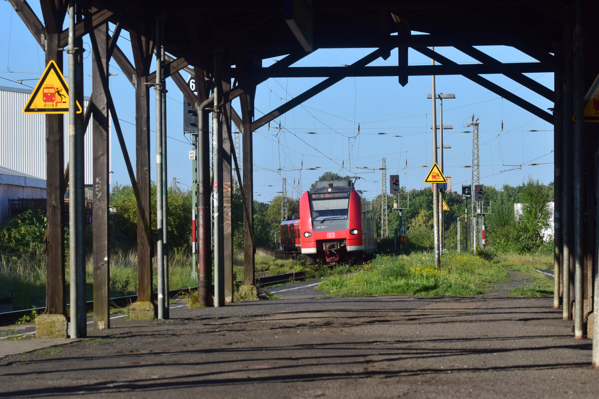 Nachschuss auf 425 102 als RB27 nach Mönchengladbach Hbf bei der Ausfahrt in Rheydt Odenkirchen in Richtung Rheydt Hbf.