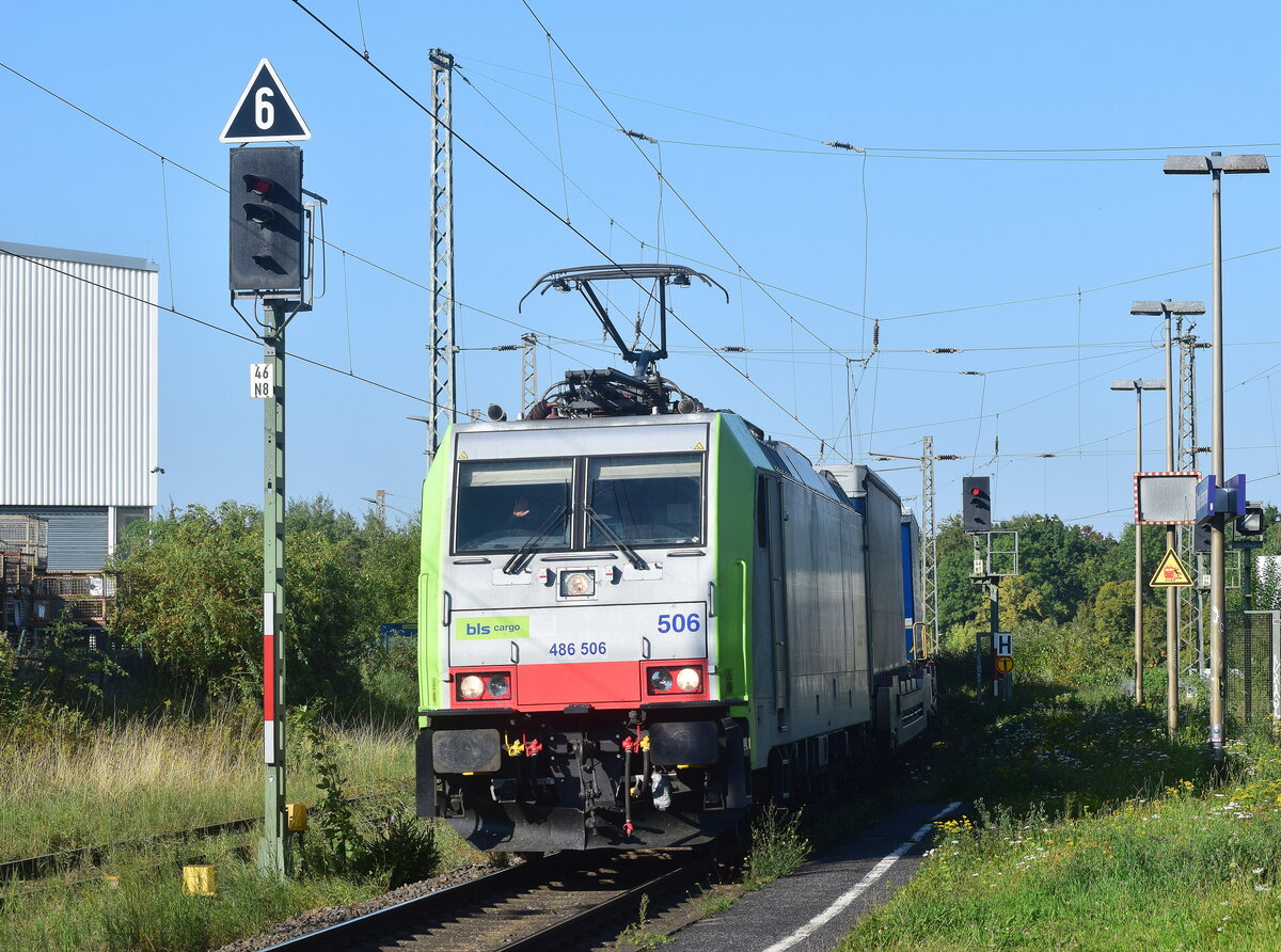 486 506 rauscht mit dem CargoBeamer Kaldenkirchen - Domodossola durch Rheydt Odenkirchen in Richtung Grevenbroich.