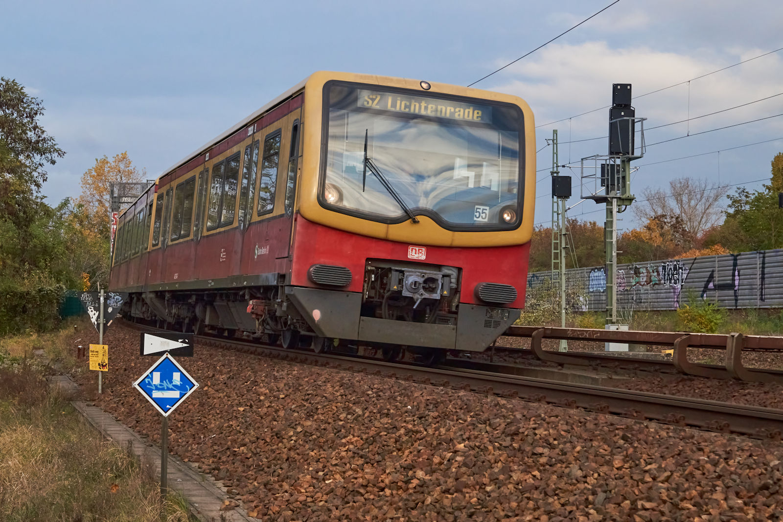 Die BR 481 fährt seit 28 Jahren durch Berlin und hat in den Jahren bereits Patina angesetzt. Ein unbekannter Vollzug dieser Baureihe war am 11.11.2023 im letzten Sonnenlicht des Tages auf der Linie S2 von Bernau nach Lichtenrade unterwegs. Hier befand sich der Zug zwischen Pankow und Bornholmer Straße am Nassen Dreieck. Michael Brunsch