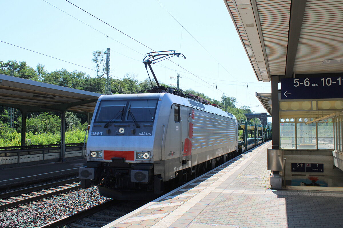 AKIEM Lok "189 842" [NVR-Nummer: 91 80 6189 842-8 D-AKIEM], aktueller Mieter wahrscheinlich die Netzwerkbahn Sachsen mit einem PKW-Transportzug am 20.09.23 Durchfahrt Bahnhof Rodleben. Lothar Stöckmann