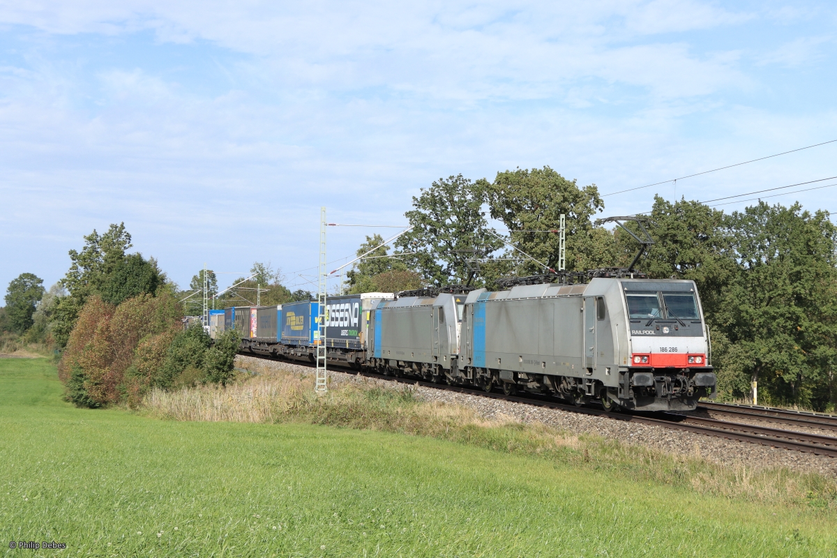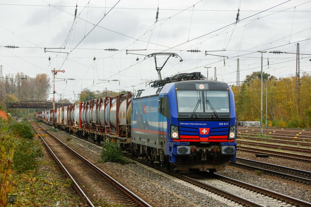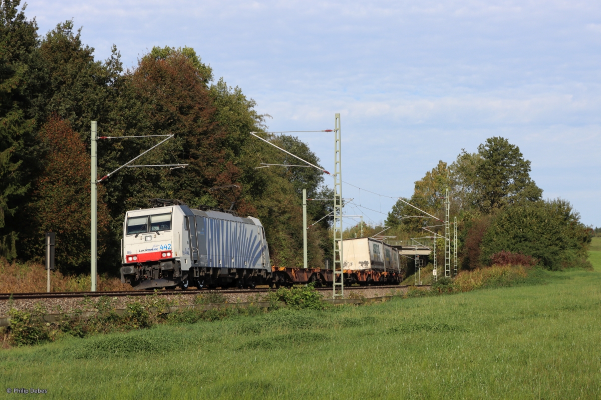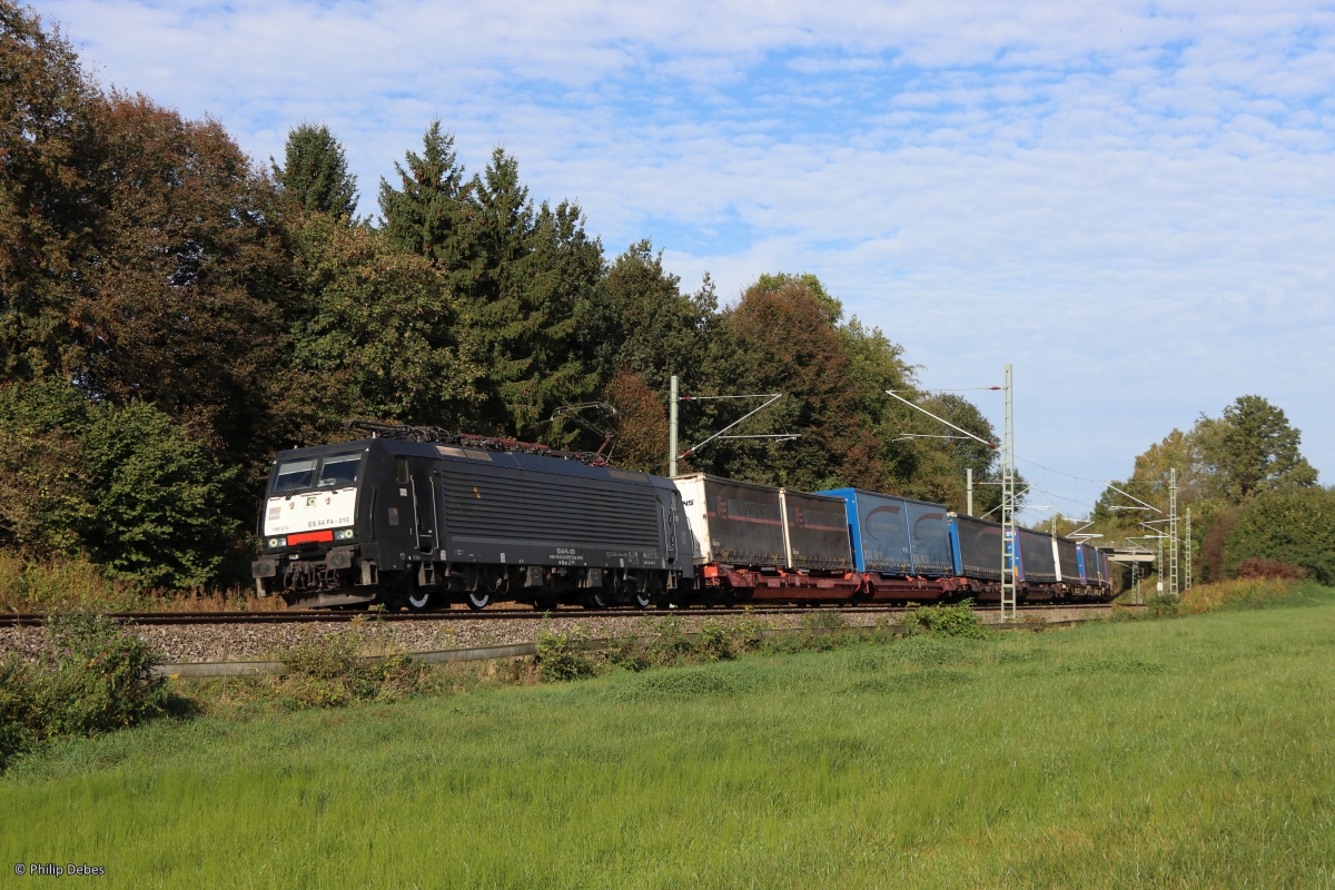 193 403-3 (Alpha Trains / vmtl. Lokomotion) und 193 120-3 (Railpool / vmtl. Lokomotion) mit einem Güterzug in Ostermünchen, 12. Oktober 2023 Philip Debes