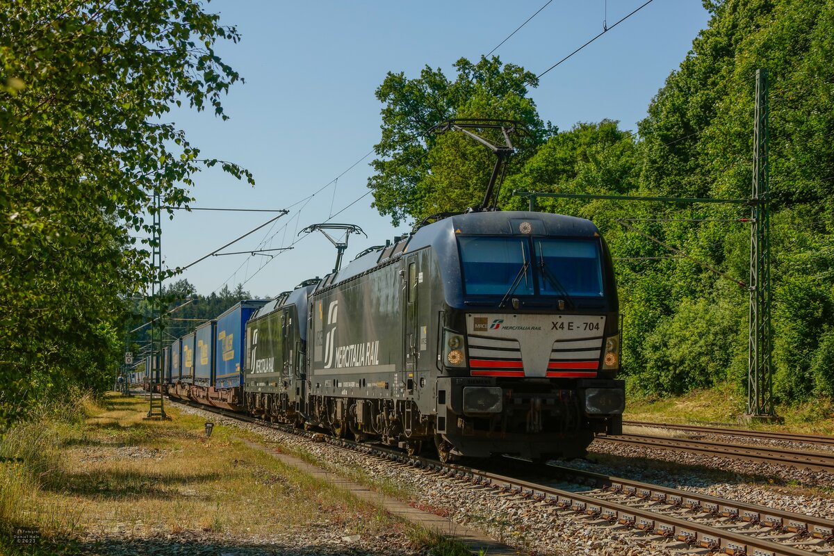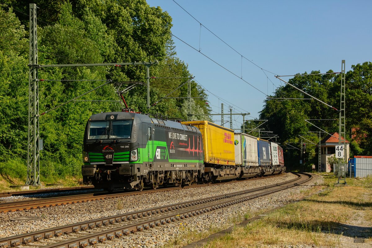 Zum Aufnahmezeitpunkt warb die 1016.023 erst seit wenigen Tagen für die Transportmanagement-Plattform "Transporeon", mit der die Rail Cargo Group eine Kooperation eingegangen ist. Ziel ist hierbei, für Verlader, Spediteure und Frachtunternehmen eine Plattform anzubieten, mit der man die Beförderung von Frachten besser verwalten und überwachen kann. Am 23. Juni 2023 konnte ich den neu gestalteten Taurus vor einem Containerzug bei der Einfahrt in den Bahnhof München Süd fotografieren. Es handelte sich hierbei um den DGS 41186 von Curtici nach Rheinhausen, der aufgrund der Sperre der Passauer Bahn über Salzburg und München umgeleitet wurde. Christoph Schneider
