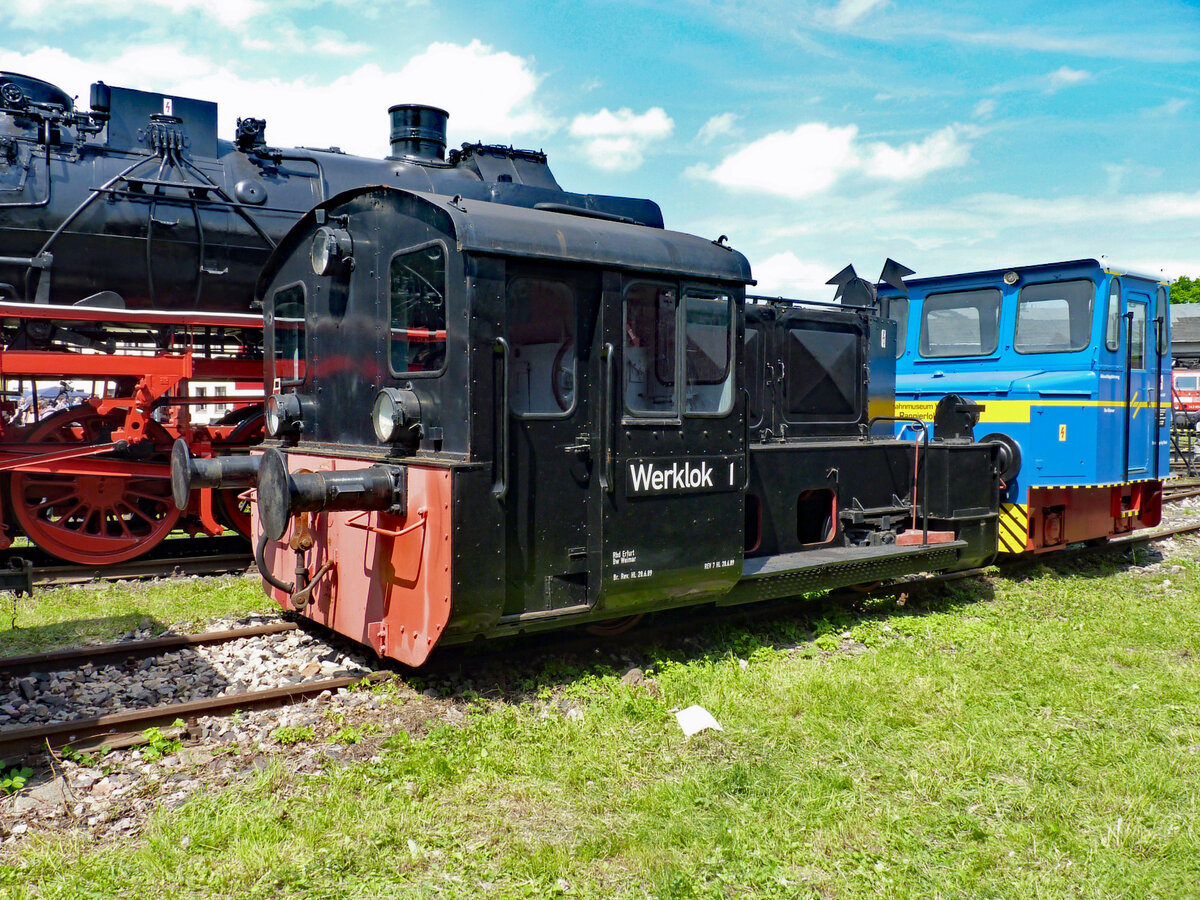 Auf allen hier abgebildeten Aufnahmen beim TEV Weimar ist diese Kleinlok der DR mit ihrer Nummer 100 886 beschriftet. Am 19.05.2012 war neben der Führestandstür "Werklok" zu lesen. Ernst Lauer