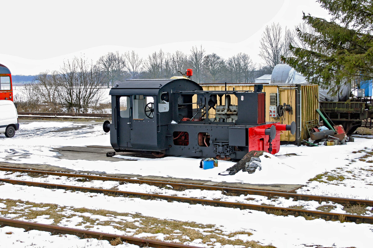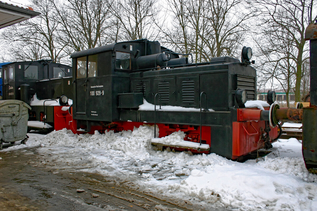 Die frühere Köf 5729 am 15.03.2006, seit 1970 bei der DR als 100 929 bezeichnet, beim HNG e. V. in Röbel. Unter der DB-Nummer 310 929 ist an dieser Stelle eine weitere Aufnahme dieses Fahrzeugs veröffentlicht. Ernst Lauer