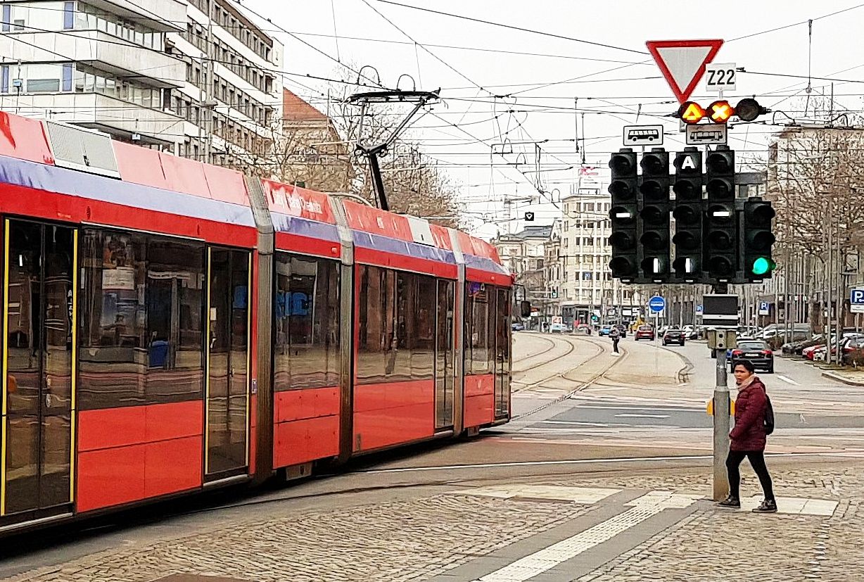Hbf Chemnitz_ Skoda 35T[6xNfGlTwZR] 922 auf Linie 4 hat sich zur Vario-Bahn 6NGT-LDZ [ABB Henschel/Adtranz] Nr.412 auf Linie 11 gesellt.__07-03-2024 Klaus-Erich Lisk