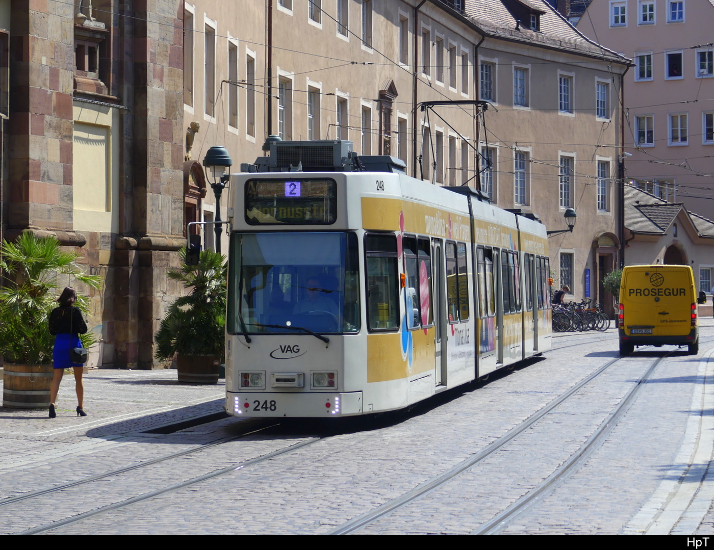 VAG Freiburg i.B. - Strassenbahn DUEWAG GT8Z Nr.248 unterwegs auf der Linie 2 in der Stadt Freiburg am 2024.06.07