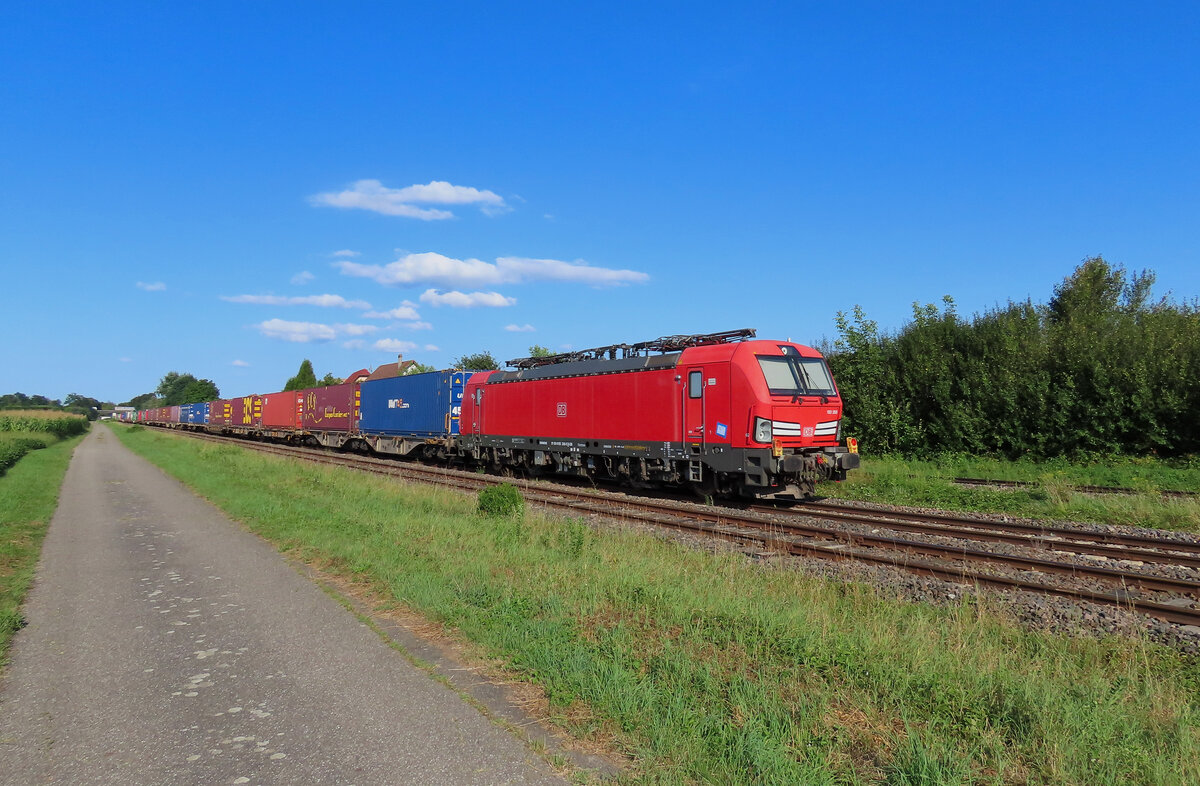 Gambsheim - 21. August 2024 : Rheintalbahn Umleiter vom 9. bis 31. August 2024. Die BB 75113 zieht einen KLV von Wörth nach Kehl. Am Zugende befindet sich die SBB Vectron 193 526. Gilles LENHARD