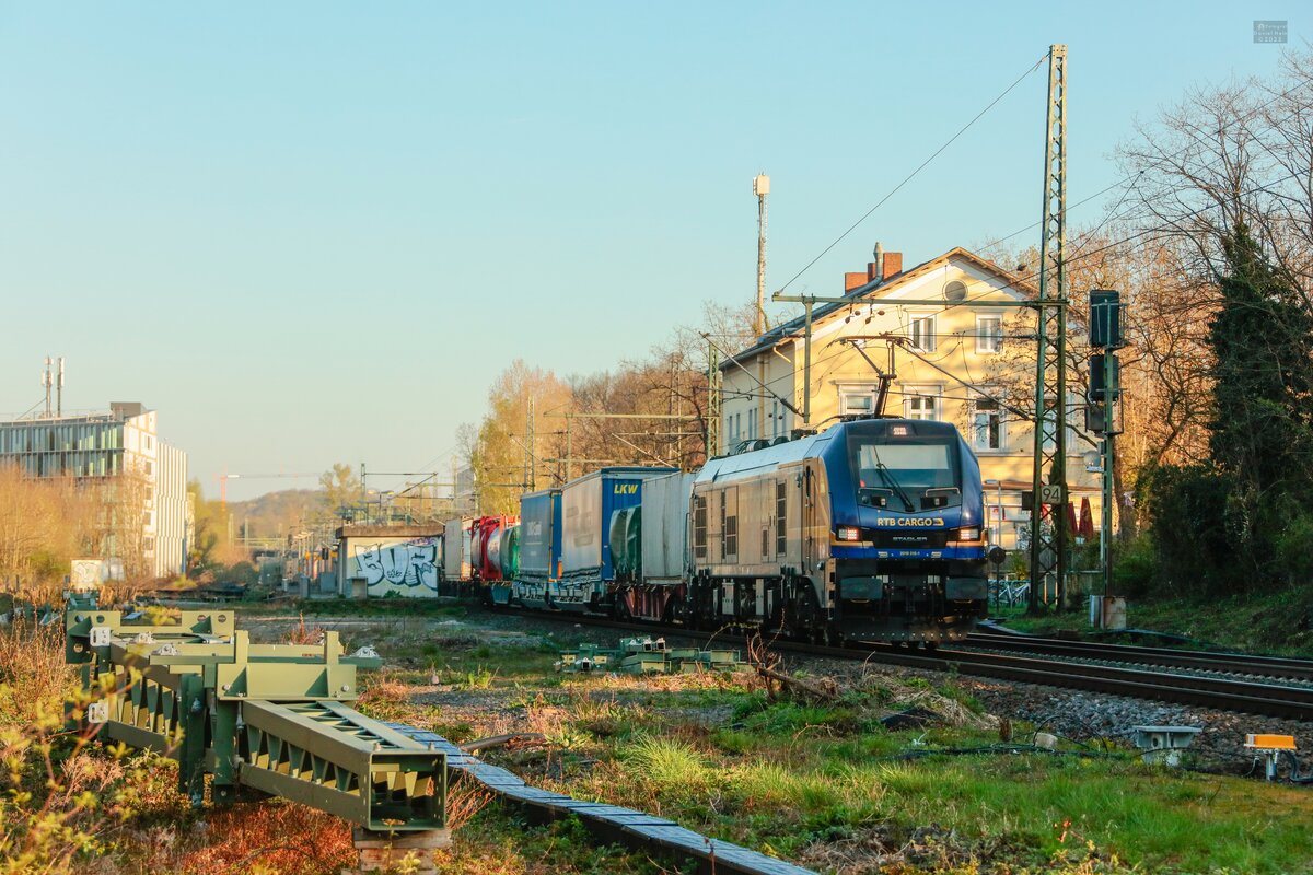 Seit Herbst 2024 haben die beiden EURO 9000 Maschinen bei Lokomotion ein neues Haupteinsatzgebiet. Schwere Tonerdezüge werden zwischen dem Westerwald und München Ost Rbf befördert. Hierfür sind die starken Dual Mode Lokomotiven aus dem Hause Stadler prädestiniert. Am 12. April 2025 bespannte die 2019 313 den leeren Tonzug DGS 59964 von Dinazzano nach Wetzlar ab der bayrischen Landeshauptstadt. Vor Dollnstein lag der Zug schön im Licht und wurde von mir erfreut dokumentiert. Christoph Schneider