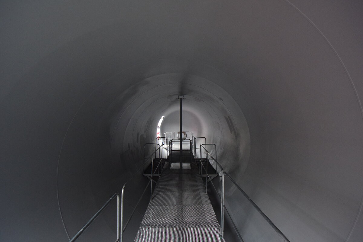 Blick ins innere eines Zags Kesselwagens aus dem hause Erciyas auf der Innotrans 2024. Dieser Kesselwagen wurde spiralförmig geschweißt. Man verspricht sich dadurch eine größere Stabilität des Güterwagens.