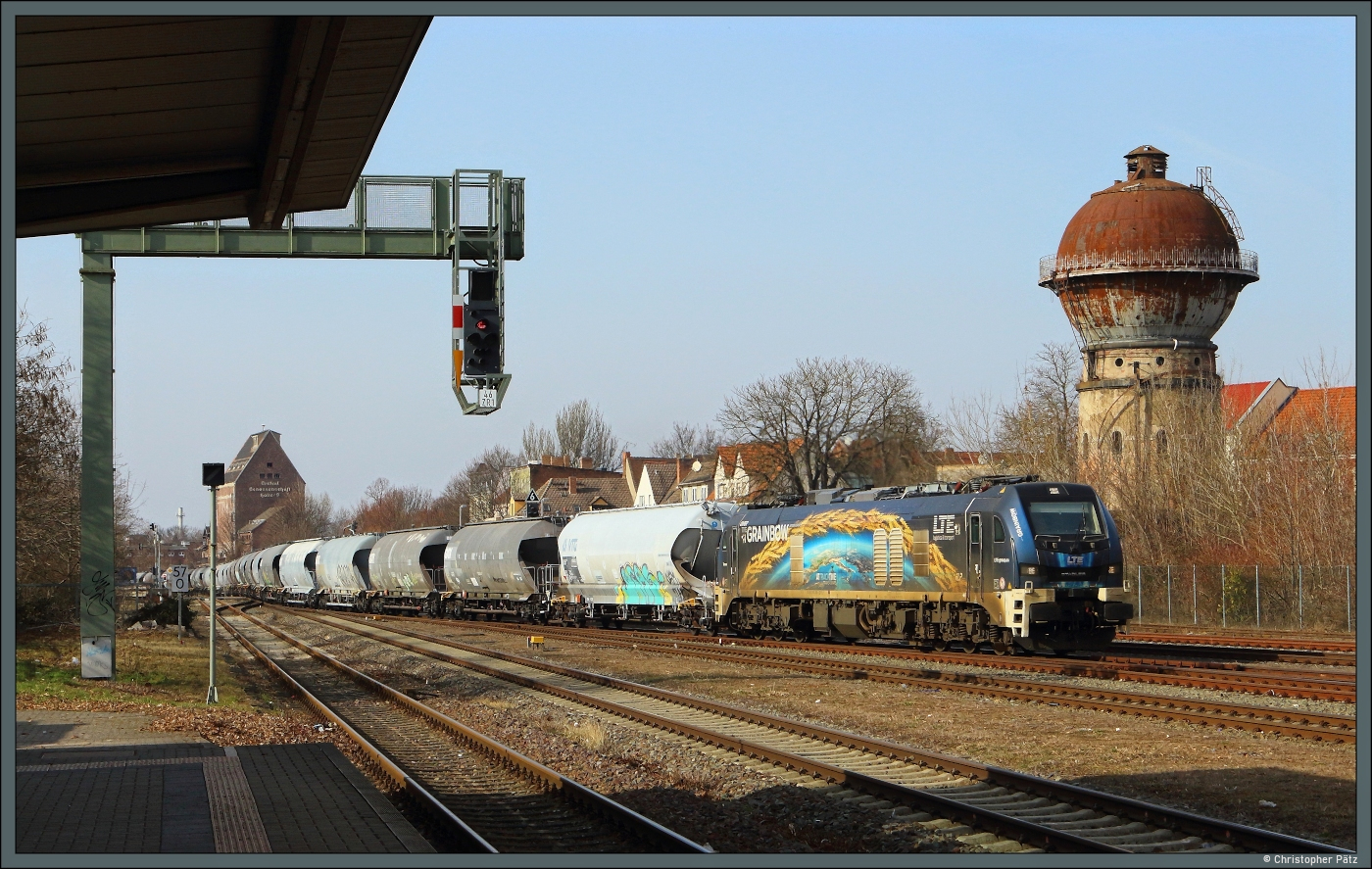 Im Bahnhof Merchweiler zweigt von der Fischbachtalbahn die am 1. Oktober 1891 eröffnete Stichstrecke zur Grube Göttelborn ab. Die Strecke wurde 1965 elektrifiziert und wird seit der Stilllegung der Grube Göttelborn nur noch selten genutzt, wenn das Kraftwerk Weiher bedient werden muss. Der 09.02.2026 war einer dieser Tage und 2019 316 war damit beauftragt, drei Kohlezüge nach Göttelborn zu bringen. Nachdem die Lok den ersten Kohlezüge ans Ziel gebracht und danach etwas rangiert hat, fährt sie nun unter der Kulisse des Göttelborner Förderturms zurück nach Wemmetsweiler, um den zweiten Zug zu holen. Leonhard Groß