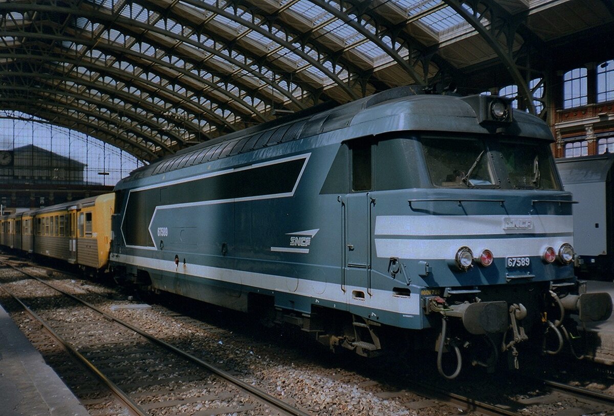 Am 19 Mai 2003 steht 67589 mit ein TER nach Amiens in Lille-Flandres.