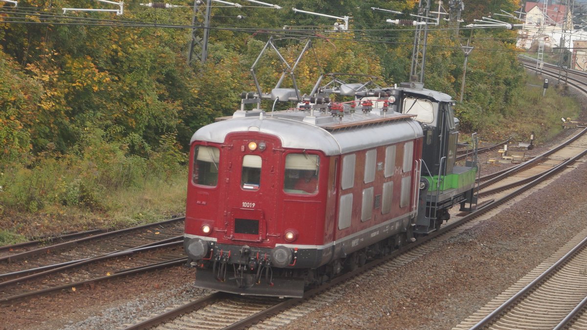 Die Elektrolokomotive Re 4/4  10019  war Ende Juni 2019 am Ende eines Sonderzuges in Wanne-Eickel zu sehen.
