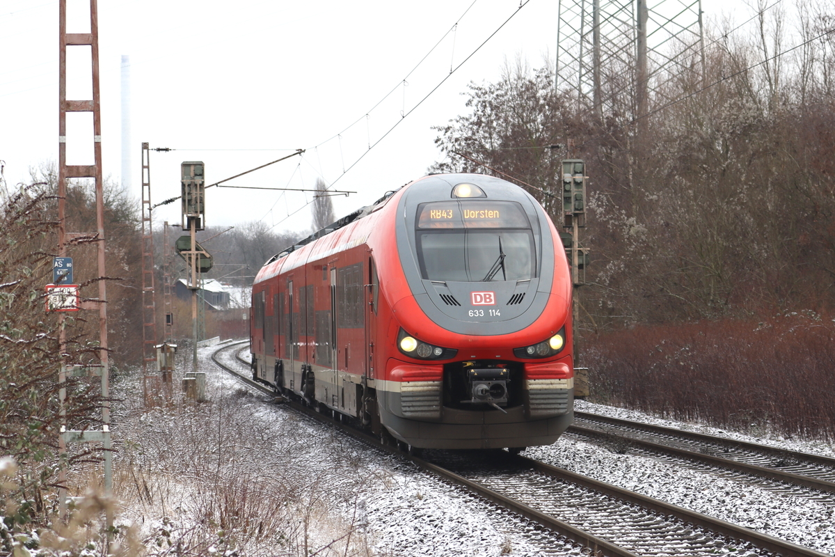 Auf dieser Aufnahme vom 01.02.2025 mit einem unbekannten 633 nach Dortmund ist das Gefälle der Bahnstrecke von Winterberg nach Bestwig gut zu erkennen, immerhin liegt das ungefähr 25 km entfernte Nuttlar an der Oberen Ruhrtalbahn 350 m tiefer Horst Lüdicke