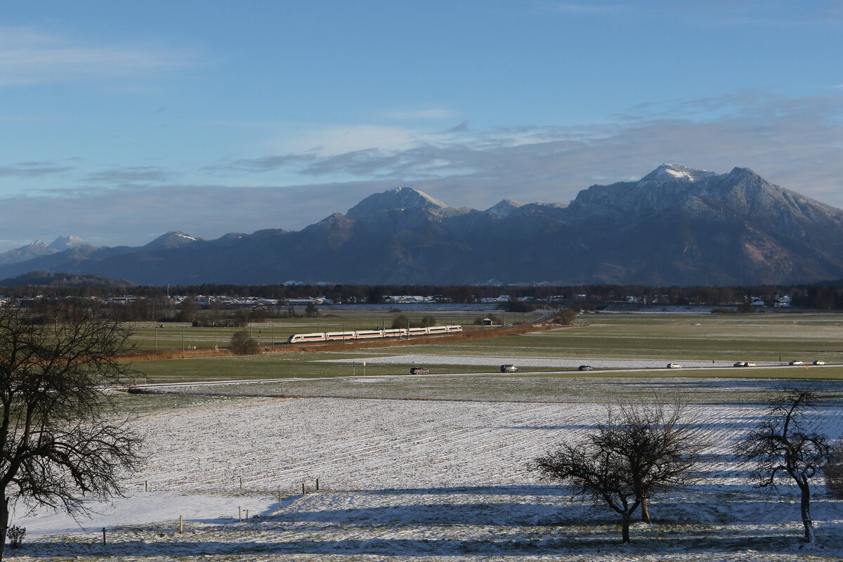 Aufgrund von Bauarbeiten am Deutschen Eck werden momentan einige Fernverkehrszüge zwischen Kärnten und Deutschland über den Tiroler Teil der Giselabahn umgeleitet. Einer davon ist der ICE 114, der auf seinem Weg von Klagenfurt Hbf nach Dortmund Hbf ab Schwarzach-St. Veit den Weg über Kitzbühel, Wörgl und Kufstein Richtung München nimmt. Am 22.11.2025 wurde auf dieser Leistung der siebenteilige 412 214 eingesetzt, der hier in tief winterlicher Atmosphäre am Pass Grießen auf 1000m Seehöhe kurz vor der Landesgrenze Salzburg - Tirol aufgenommen wurde. Markus
