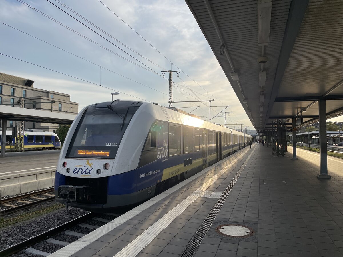 Eine BR 622 von Erixx in Hildesheim auf Gleis 15, außerplanmäßig nur zwischen Hildesheim und Bad Harzburg, durch baustellenbedingte Arbeiten bei Sarstedt. T.B
