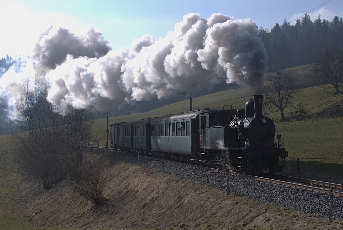 Am 16.03.2025 ist der Halbesel frühmorgens bei Huttwil unterwegs, Extrafahrt zum hundertjährigen Jubiläum.