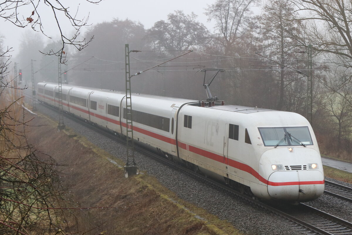 Etwas zu kurz geraten ist dieser Vertreter der Baureihe 402, mit nur einem Wagen der ersten Klasse machte sich Triebzug Quedlinburg am 11.2.26 auf den Weg von Emden nach Köln, kurz vor dem erreichen des Haltepunktes Sythen konnte ich den Zug fotografisch festhalten Jens Hubers