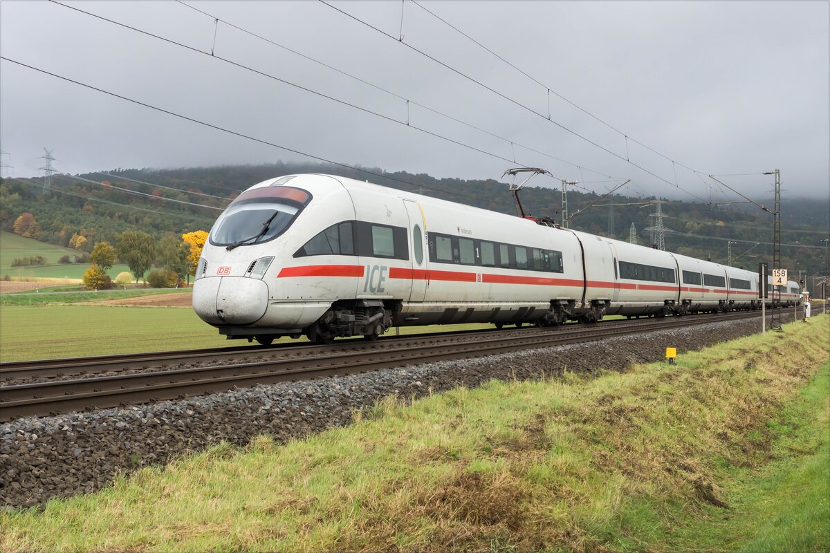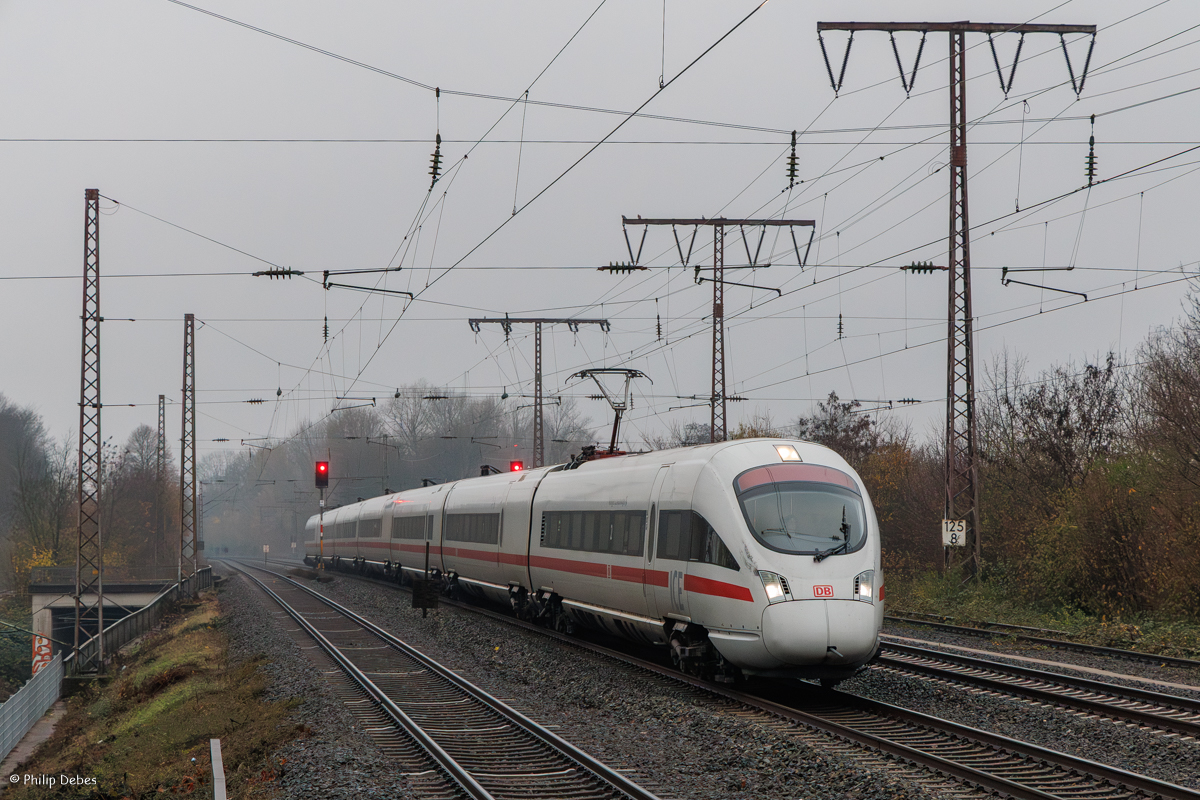 Vom durch den Bopparder Hamm führenden Römerweg hat man einen guten Ausblick auf die nach Süden verkehrenden Züge auf der linken Rheinstrecke, am 13.11.2025 ist ein 411 in Richtung Süden unterwegs Horst Lüdicke