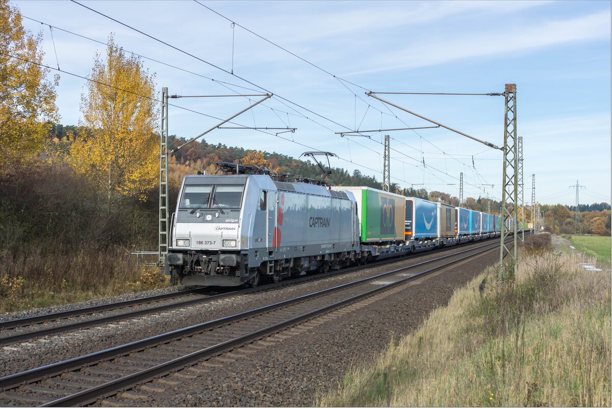 LTE Logistik und Transport GmbH aus Graz mit 186 943 (NVR-Nummer: 91 80 6186 943-7 D-LTE) und einem Containerzug am 02. Oktober 2025. Klaus-P. Dietrich