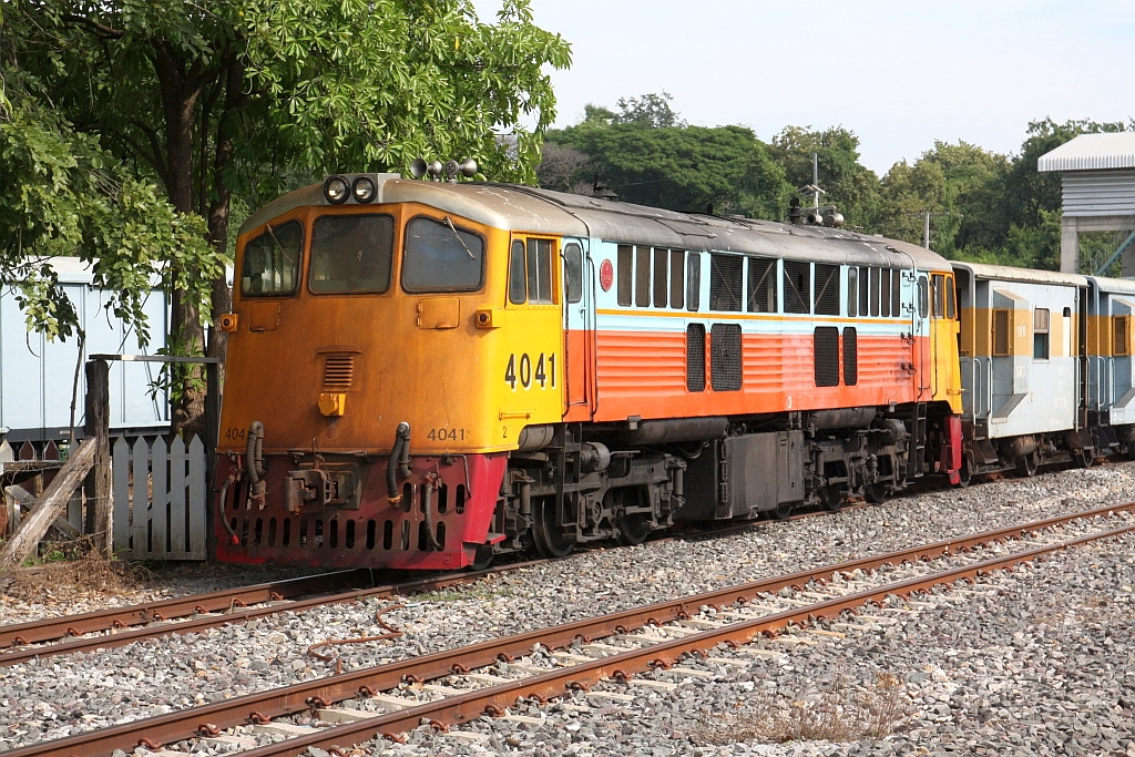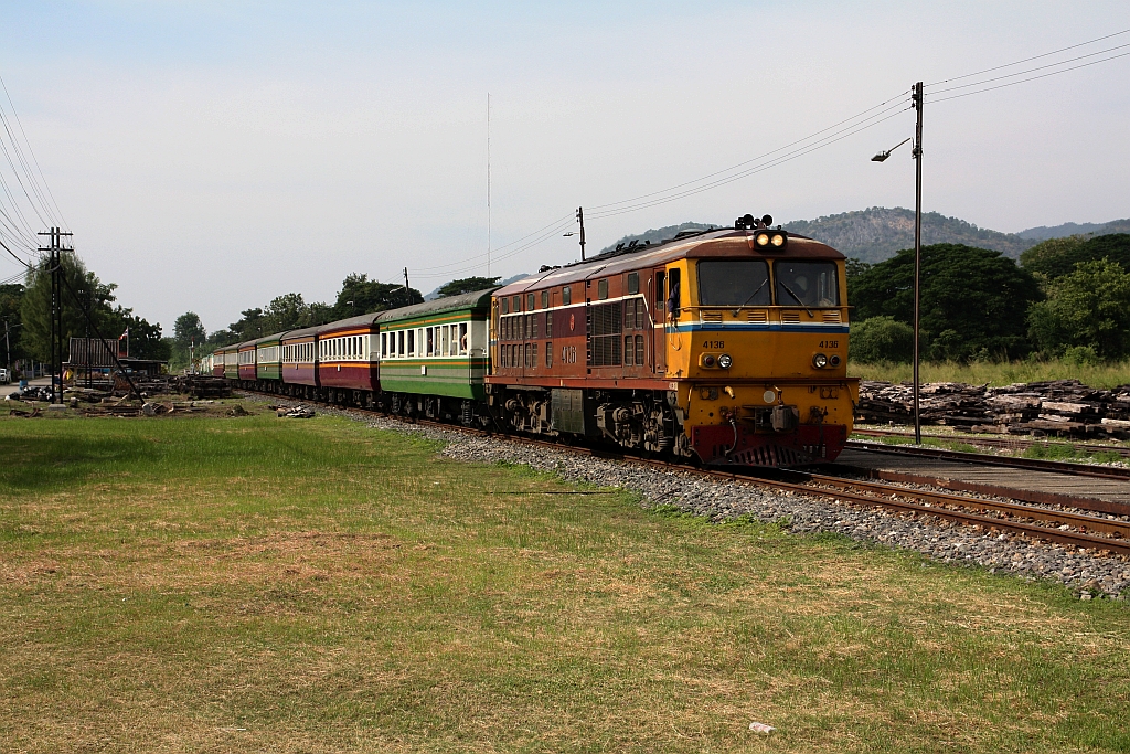 ALS 4136 (Co'Co', de, Alsthom, Bj.1974) fährt am 26.November 2025 mit dem ORD 258 (Nam Tok - Thon Buri) in die Kanchanaburi Station ein. Karl Seltenhammer