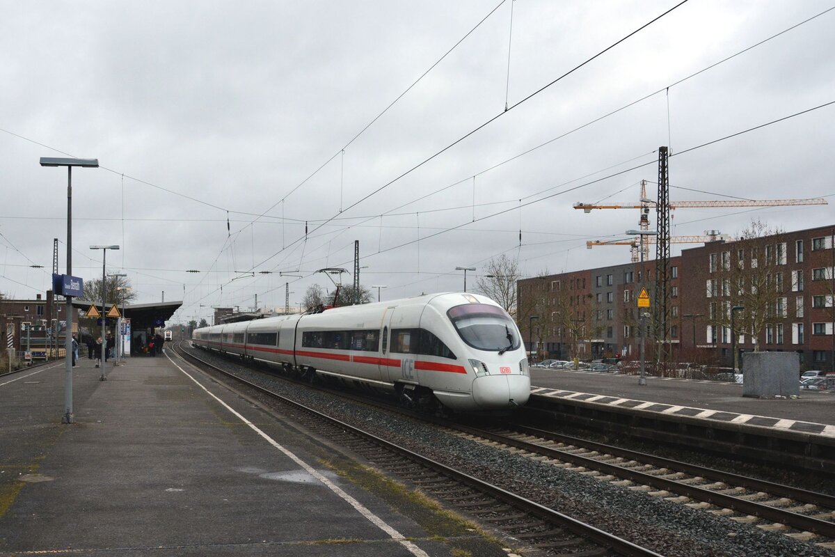 Kurz nach der Durchfahrt des EC 9 in Düsseldorf Wehrhahn am 12.12.2025 folgte seine Ablösung in Gestalt des 412 213-3 mit dem ICE 105, der ebenfalls die Schweiz als Ziel hat. Allerdings nimmt er den schnelleren Weg über die SFS Köln - Frankfurt und ist dadurch um einiges früher als der EC in Basel. Horst Lüdicke