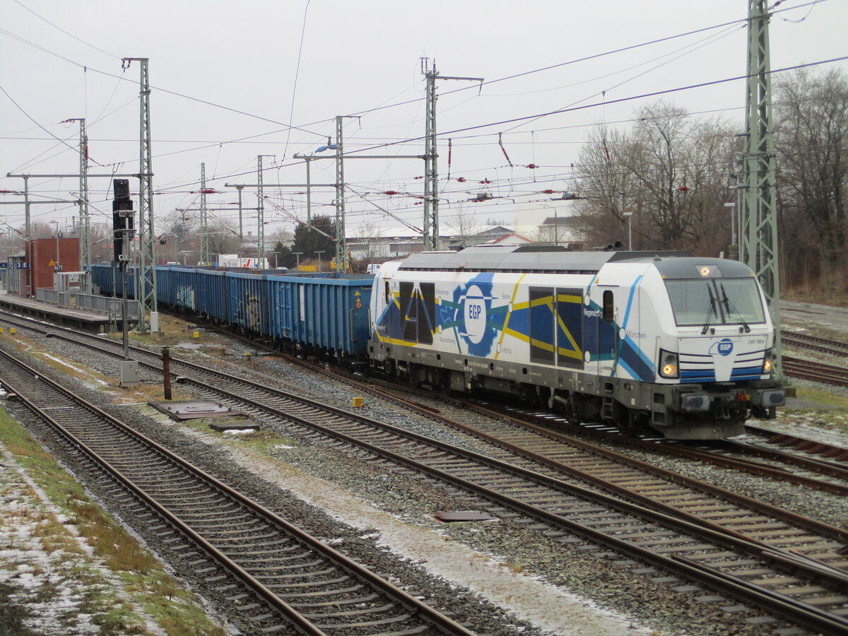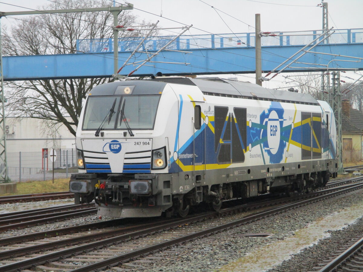 Diese Sicht hatte einst der Fdl von Bergen/Rügen aus seinem Stellwerksfenster.Von der benachtbarten Fussgängerbrücke hat man fast den selben Blick wie früher der Fdl.Am 23.Februar 2026 rangierte die EGP 247 904. Mirko Schmidt