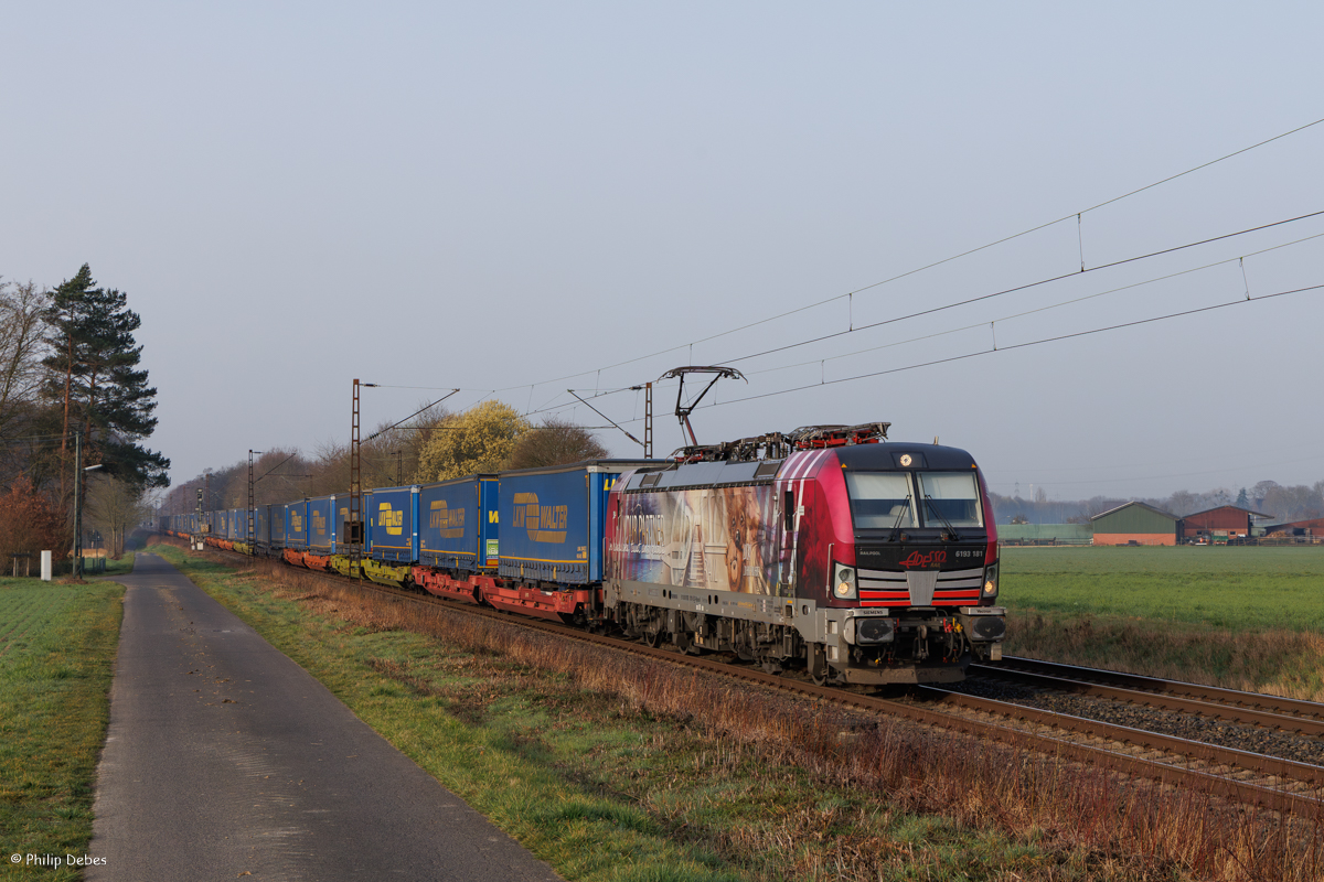193 550 ATLU/TXL "TX Logistik & AlphaTrains - Zwei Pole mit ernomer Zugkraft" mit einem KLV-Zug bei Dollnstein Richtung Ingolstadt, 23.11.2021 Korbinian Eckert