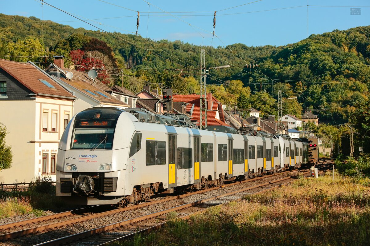 460 512-7 TransRegio als RB26 nach Mainz Hbf in Oberwesel, Oktober 2025.