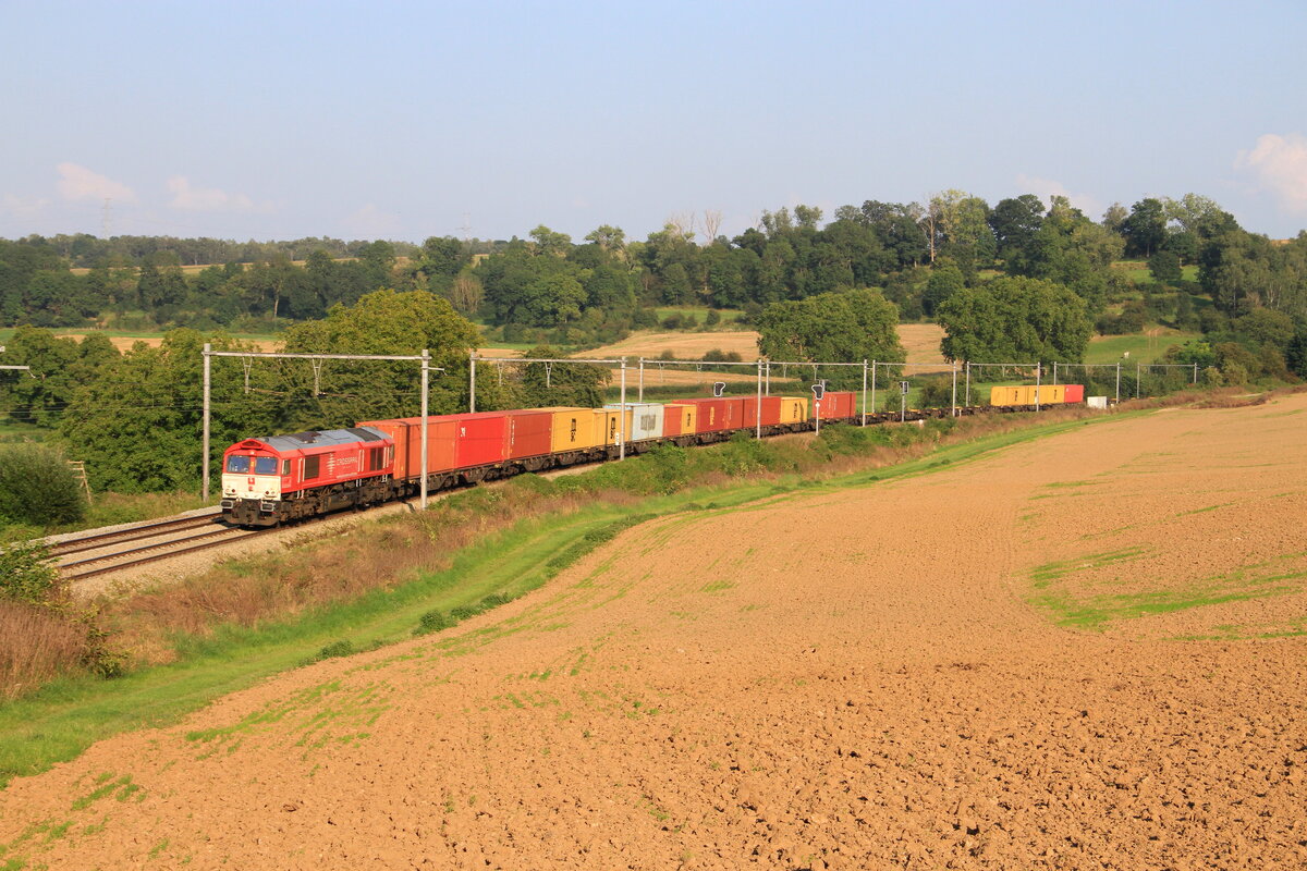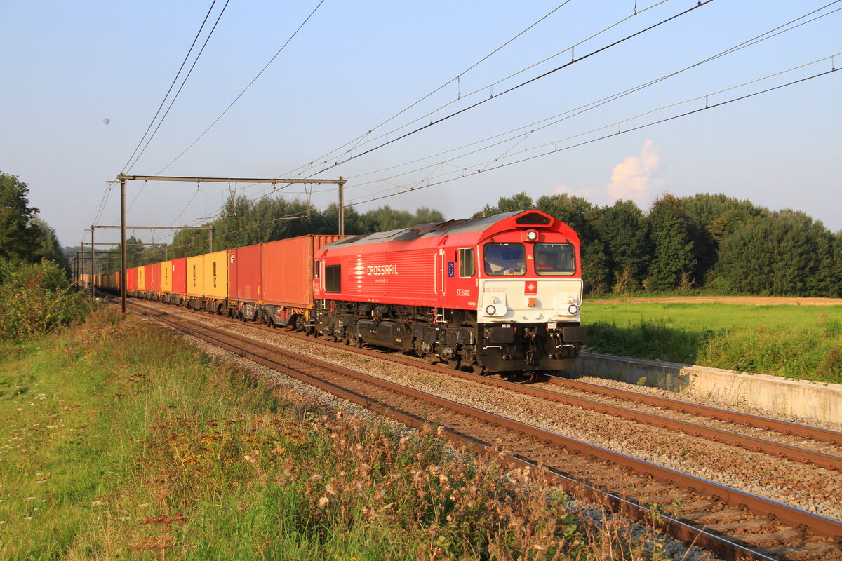 Lok DE6302 vom Crossrail mit einem Containerzug, in 's Herenelderen