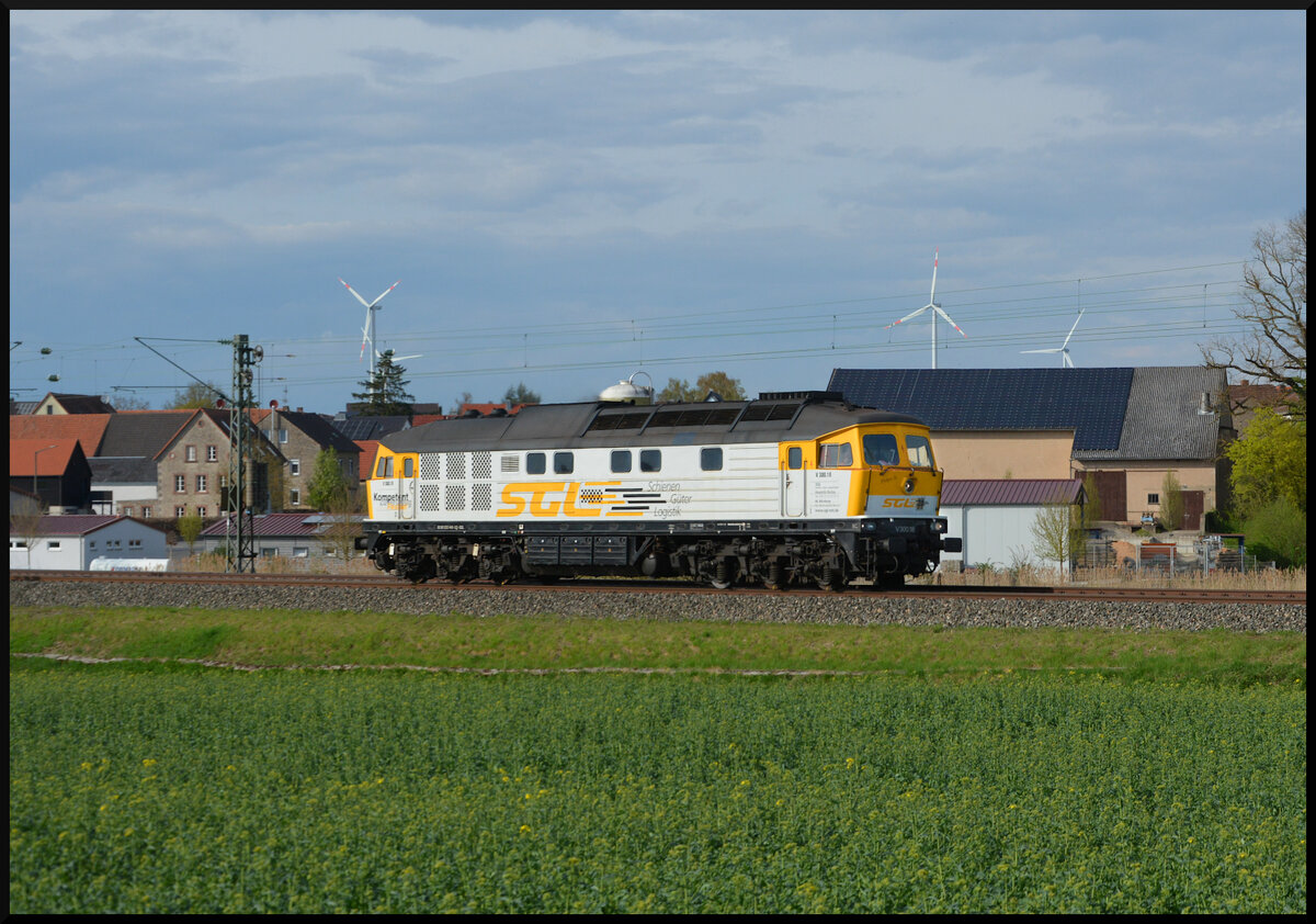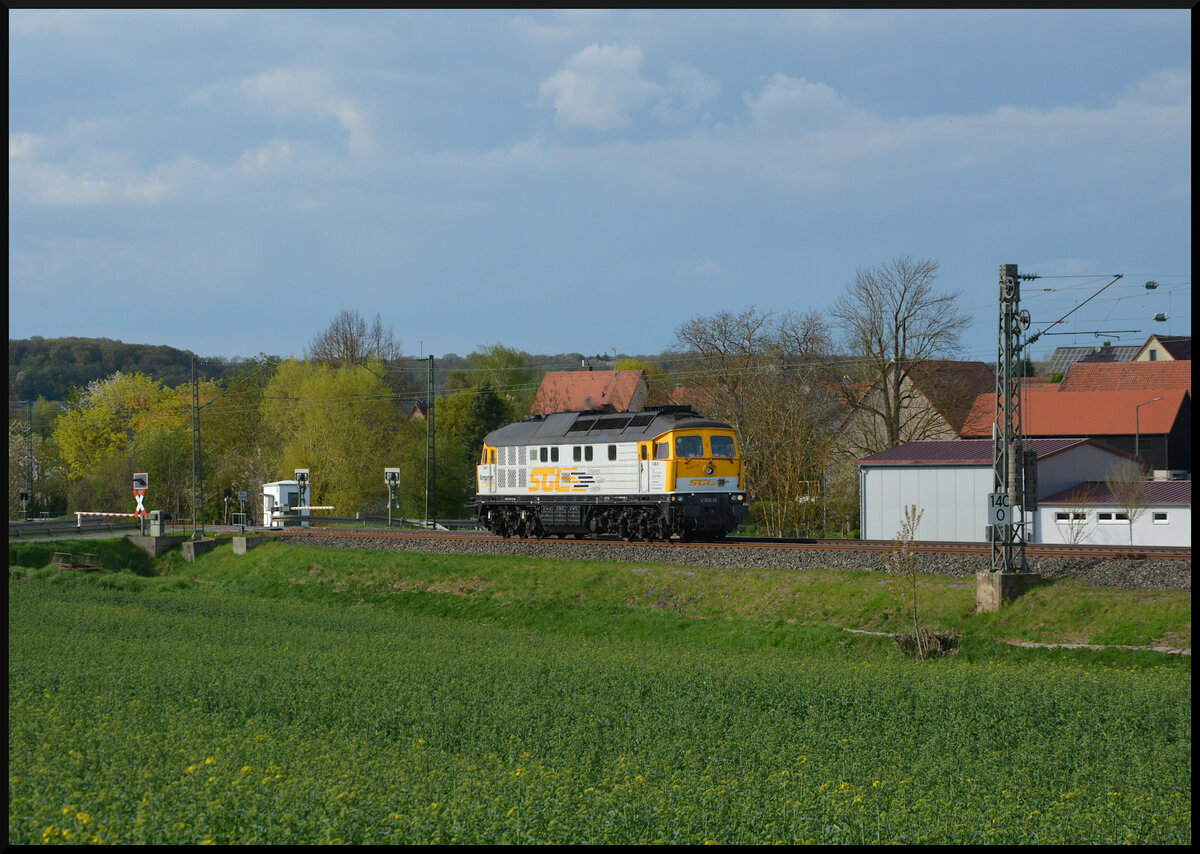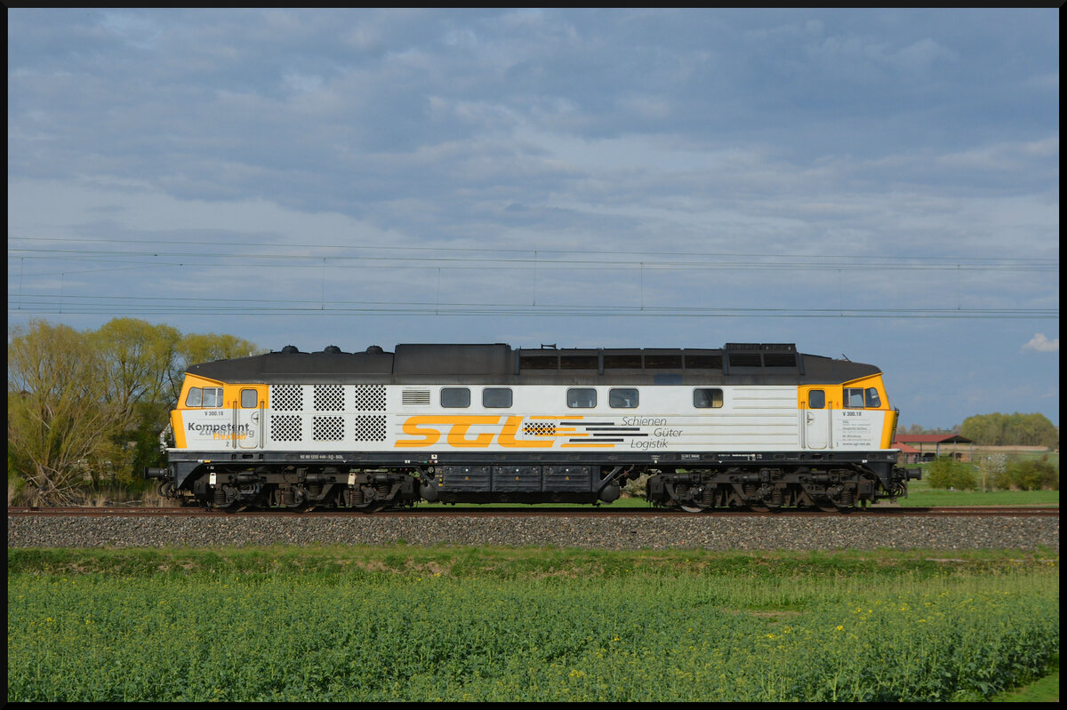 SGL V300.18 (232 446) hatte am Vormittag des 16.04.2026 20 Flachwagen (Res) von Würzburg Rbf nach Kornwestheim gebracht, als die Lokomotive am Nachmittag auf der Rückfahrt bei Moos fotografiert werden konnte. Matthias Kümmel