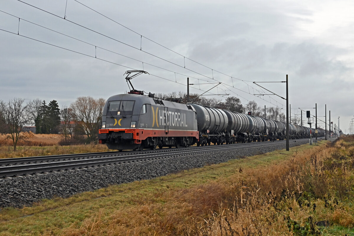 Mittlerweile eher selten trifft man auf deutschen Gleisen einen Taurus. Am 04.12.25 führte 182 501 der Hupac einen Kalizug durch Braschwitz Richtung Magdeburg. Martin Schneider